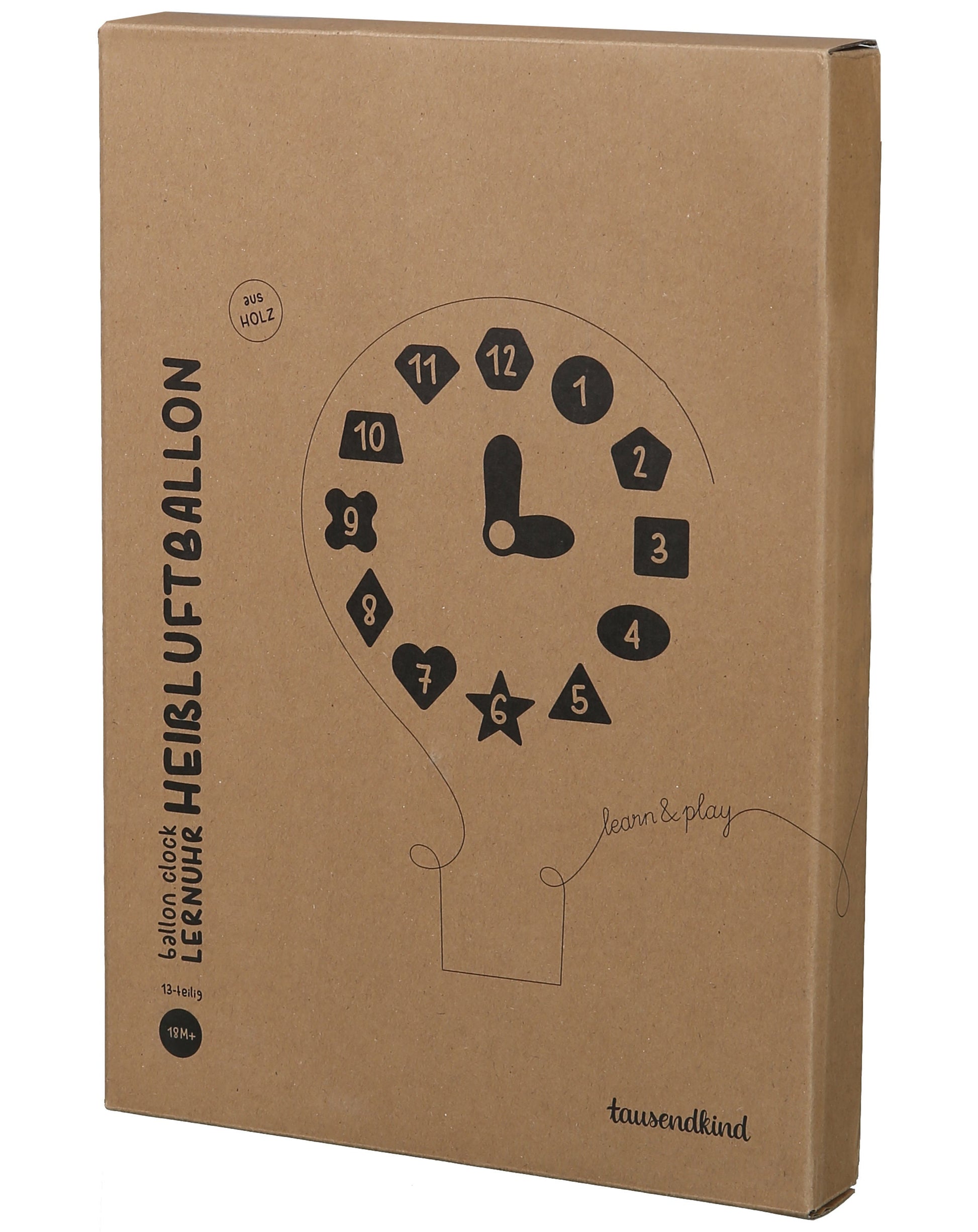 Ein tolles Spielzeug, um erste Zahlen und die Uhrzeit zu lernen und um Feinmotorik und Konzentration zu trainieren. Bestellen Sie die Lernuhr „Heißluftballon“ aus Holz von tausendkind am besten gleich online.