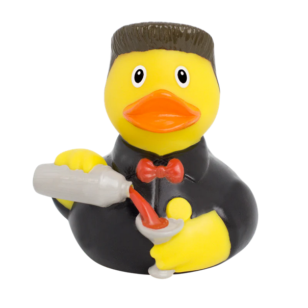 Für den Freundeskreis, Mitbewohner, Kollegen oder Barkeeper des Vertrauens. Falls jemand in Ihrem Umfeld immer das passende Getränk serviert, ist die Barkeeper Quietscheente das perfekte Dankeschön. Diese Badeente mit ihrem schwarzen Outfit und der roten Fliege sieht außerdem sehr stylisch aus.