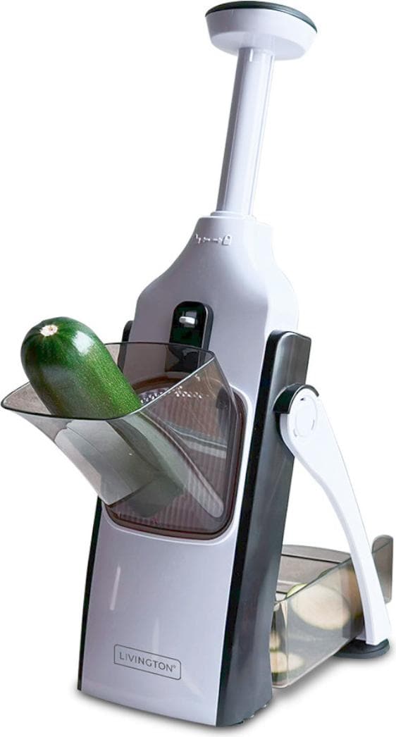 Livington Everclean Gemüseschneider Turbo Cut Schwarz/Weiss, Anwendungszweck: Käse, Zitrone , Gemüse , Pommes Frites , Detailfarbe: Weiss, Schwarz, Anzahl Teile: 6 Teile, Spülmaschinenfest: Ja, Set: Nein, Verarbeitungsart: Dicke Scheiben, Julienne, Dünne Scheiben.