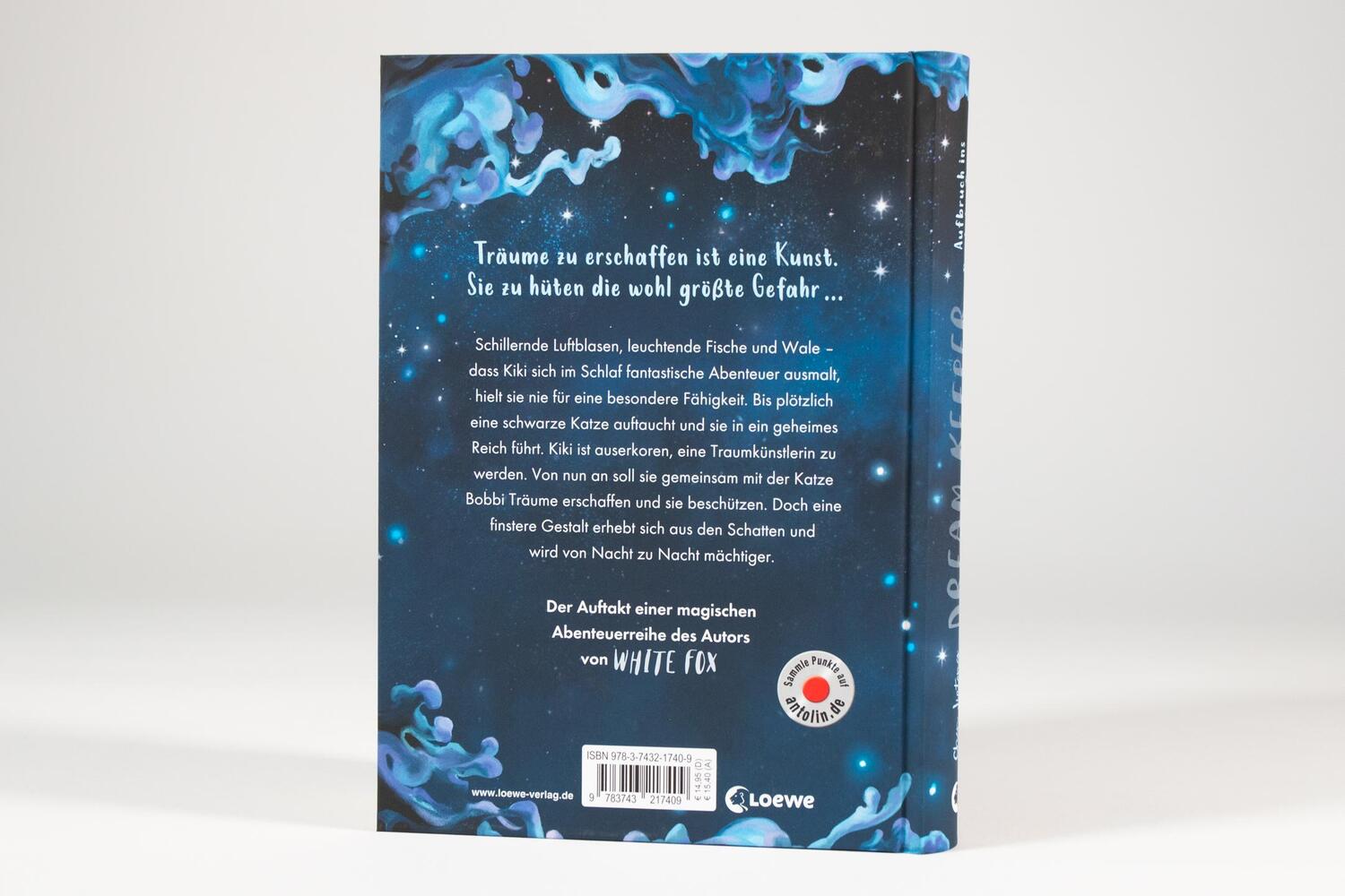 Schillernde Luftblasen, leuchtende Fische und Wale - dass Kiki sich im Schlaf fantastische Abenteuer ausmalt, hielt sie nie für eine besondere Fähigkeit. Bis plötzlich eine schwarze Katze auftaucht und sie in ein geheimes Reich führt. Kiki ist auserkoren, eine Traumkünstlerin zu werden. Von nun an soll sie gemeinsam mit der Katze Bobbi Träume erschaffen und sie beschützen. Doch eine finstere Gestalt erhebt sich aus den Schatten und wird von Nacht zu Nacht mächtiger.