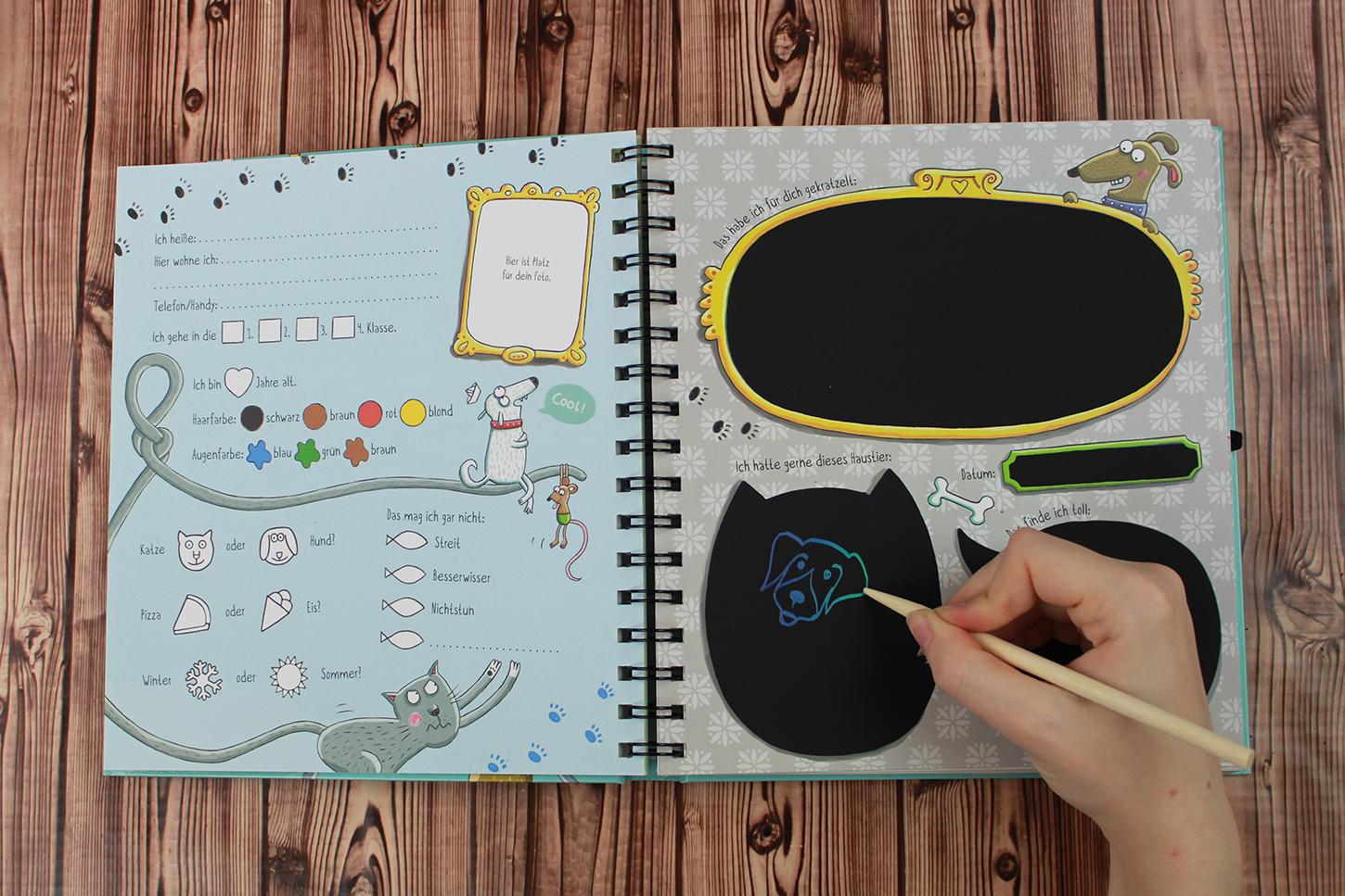 Hier können sich alle deine Freunde eintragen und bunte Kratzelbilder malen! Zusätzlich gibt es noch Kratzelsticker, mit denen sich lustige Fragen beantworten lassen. So behältst du deine Freunde für immer in Erinnerung!