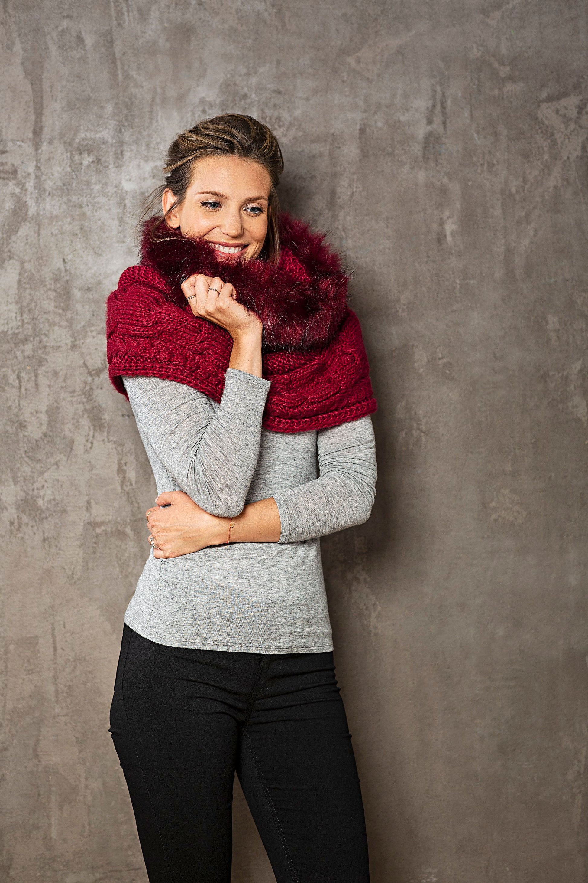 DAS Accessoire für die kalte Jahreszeit: Der weiche, warme Loop-Schal mit Strickmuster und Kunstpelzbesatz punktet mit seiner Vielseitigkeit. Tragen Sie ihn als Schal, als Mütze bzw. Kapuze, über die Schulter gezogen … Auf jeden Fall gilt: Sichern Sie sich rasch Ihre Lieblingsfarbe, bestellen Sie den Loop-Schal noch heute bequem online!