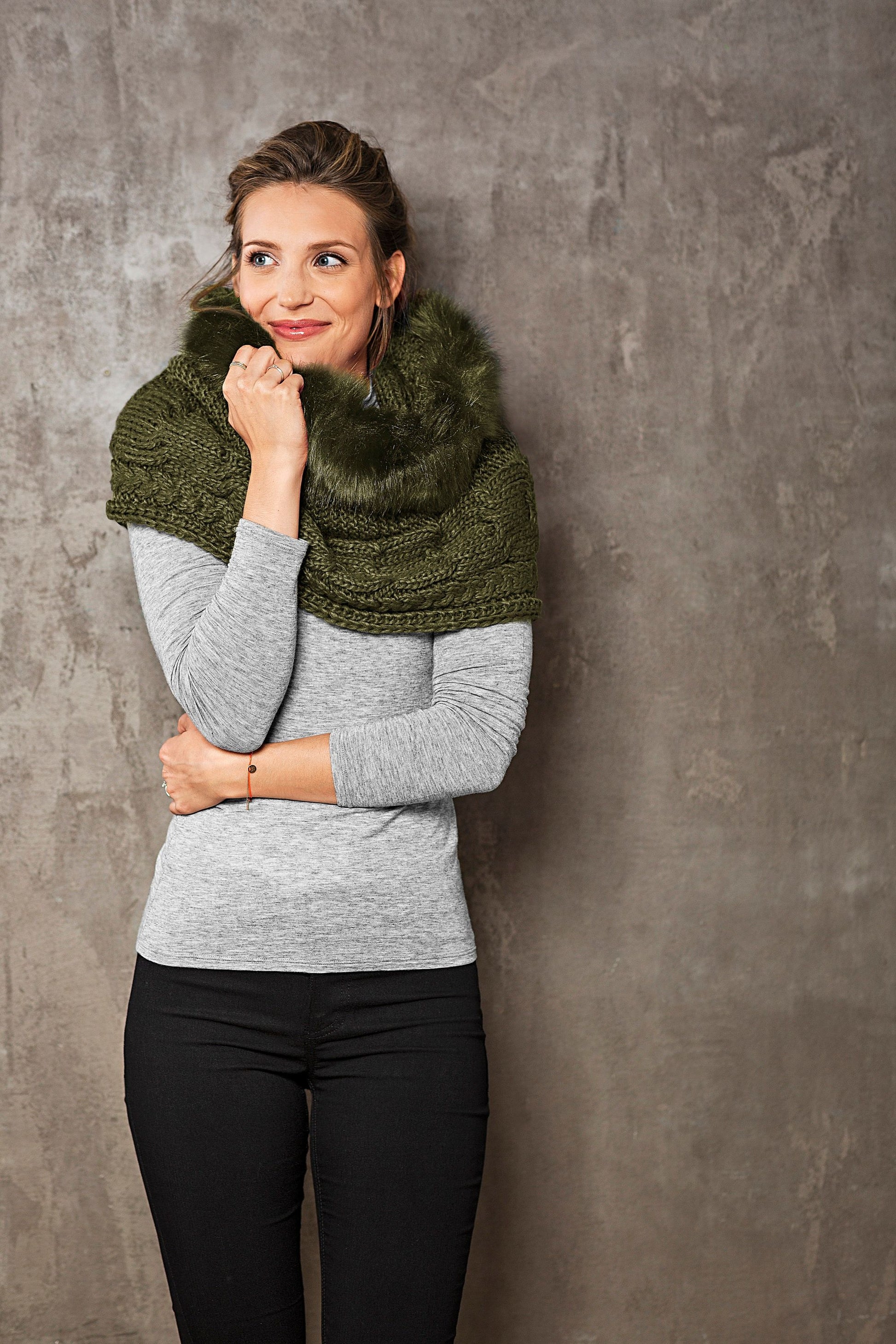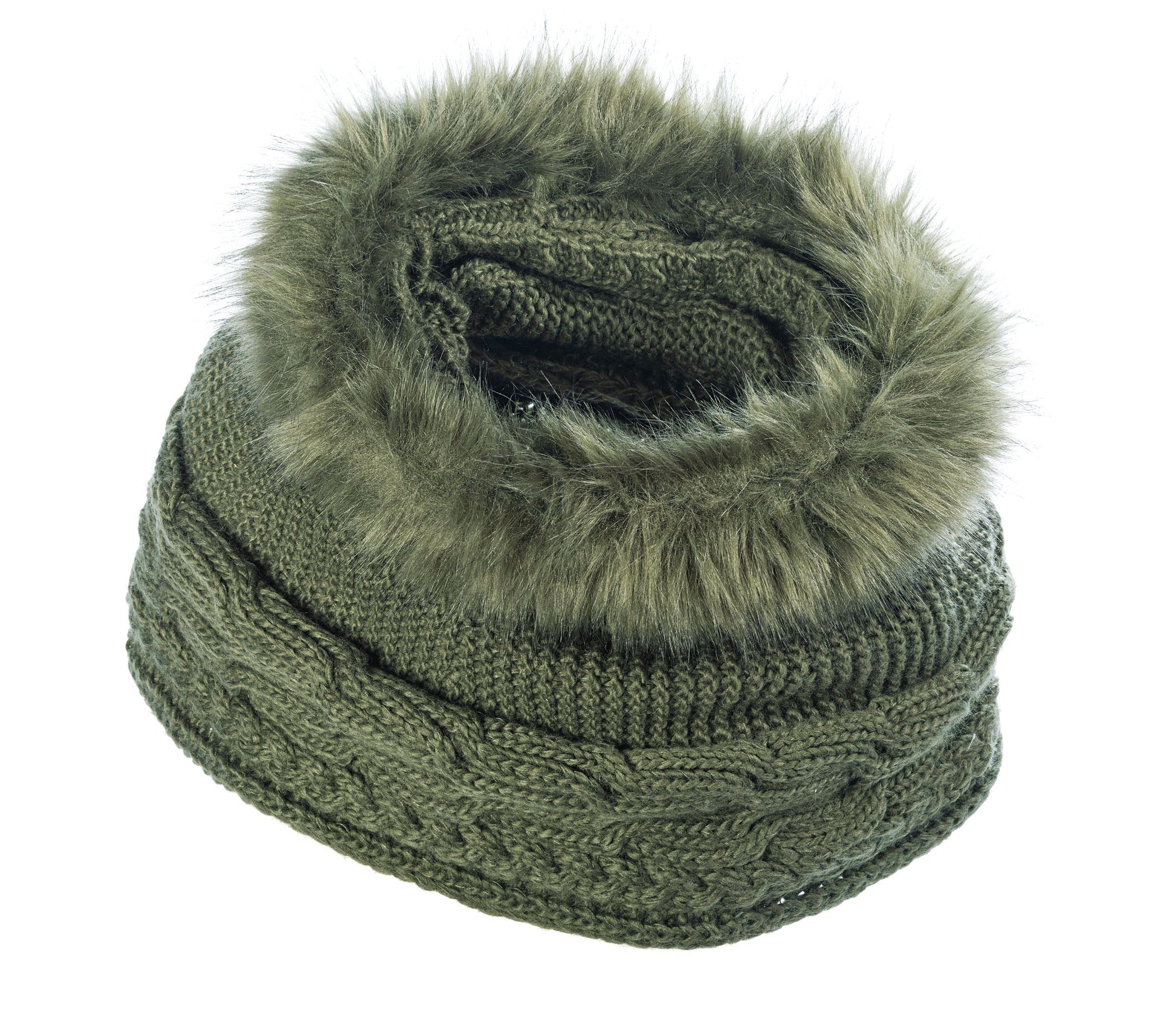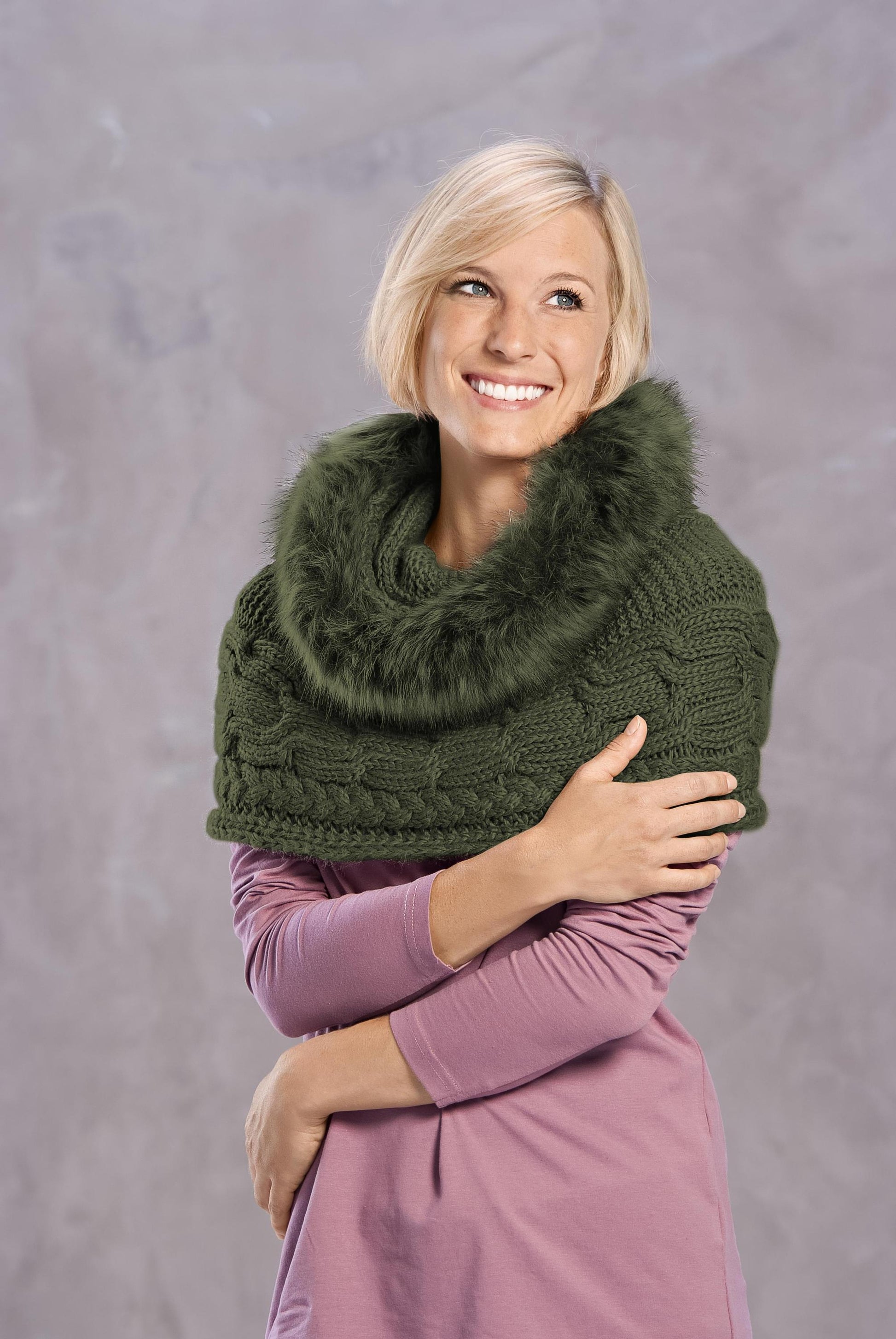 Loop-Schal mit Kunstpelz, oliv