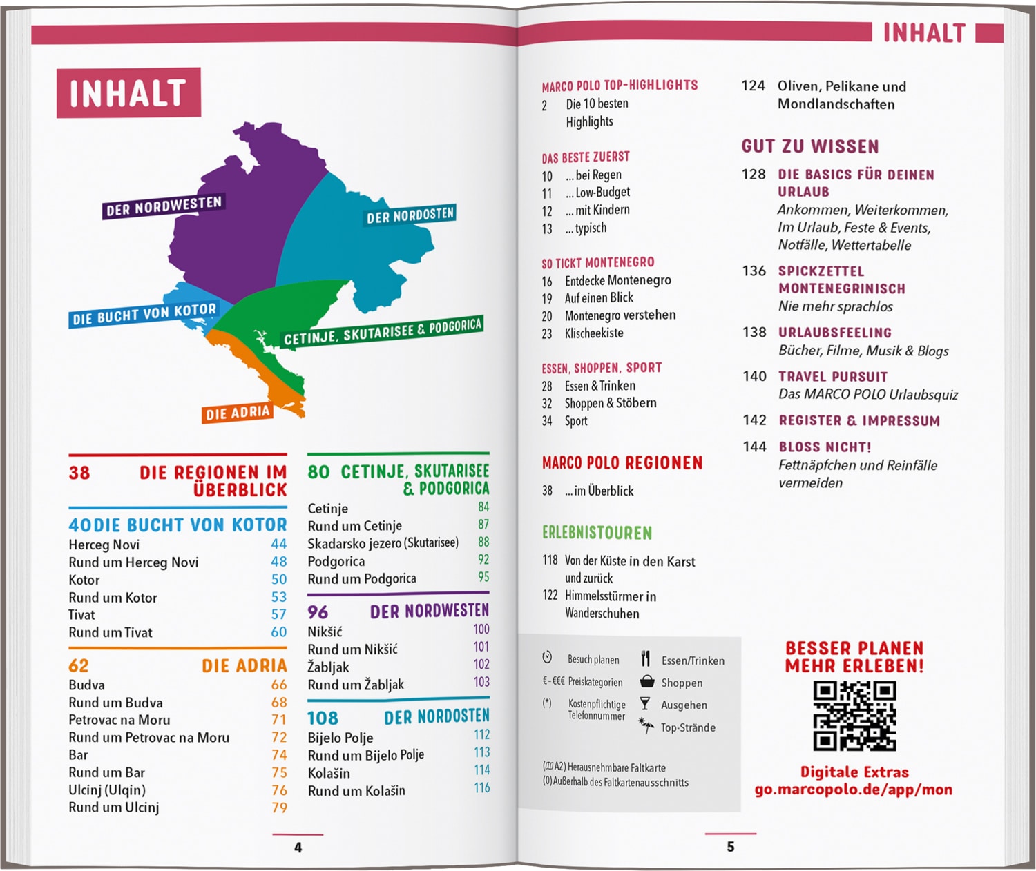 Ob entspannter Badeurlaub, Architektur-Genuss pur oder Wander-Highlights am laufenden Band: Dein MARCO POLO Reiseführer ist der ideale Begleiter, wenn du die schönsten Seiten Montenegros erkunden willst.