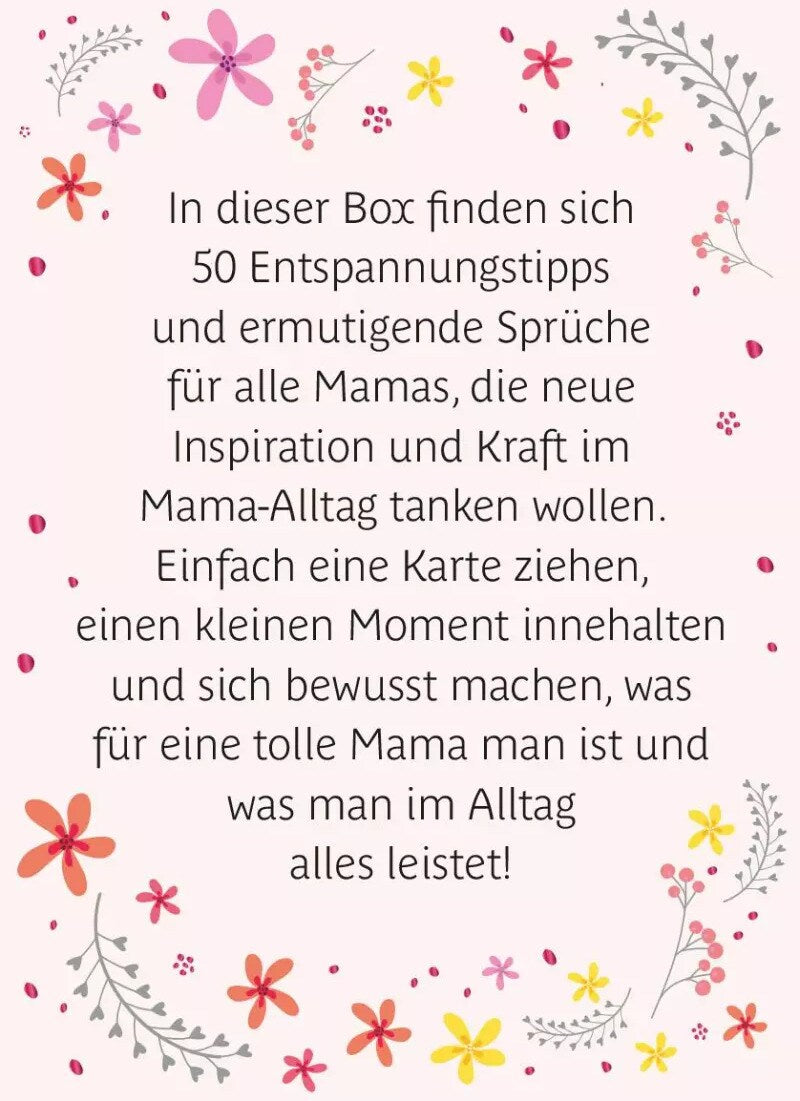 - Für alle Super-Mamas: 50 Kärtchen mit motivierenden Sprüchen und Tipps für kleine Auszeiten für zwischendurch