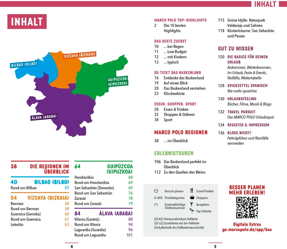 Der MARCO POLO Reiseführer für das spanische Baskenland unterstützt dich bei der Reiseplanung - vor während und nach dem Urlaub. Schon vor der Abfahrt findest du hier Infos zur Anreise, zu Unterkünften, Land und Leuten. Vor Ort stellst du dir aus den zahlreichen Tipps dein Lieblingsprogramm zusammen oder lässt dich von der kostenlosen Touren-App einfach zu den schönsten Locations führen. Mit deinem MARCO POLO Reiseführer im Gepäck hast du alles, was du für einen entspannten Urlaub im Baskenland brauchst!