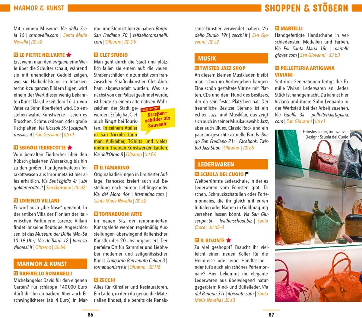 Florenz ist eine Weltmetropole im Kleinformat. Sonnenanbeter relaxen auf den großen Plätzen. Straßenmusikanten scharen Gruppen von Zuhörern um sich. Genießer füllen Restaurants und Enotheken, während Shoppingfans glücklich nach Hause tragen, was sie auf den noblen Einkaufsmeilen erstanden haben. Und irgendwann begegnen sich alle wieder: beim Sightseeing in den Uffizien, am Palazzo Pitti oder in der Galleria dell'Accademia.