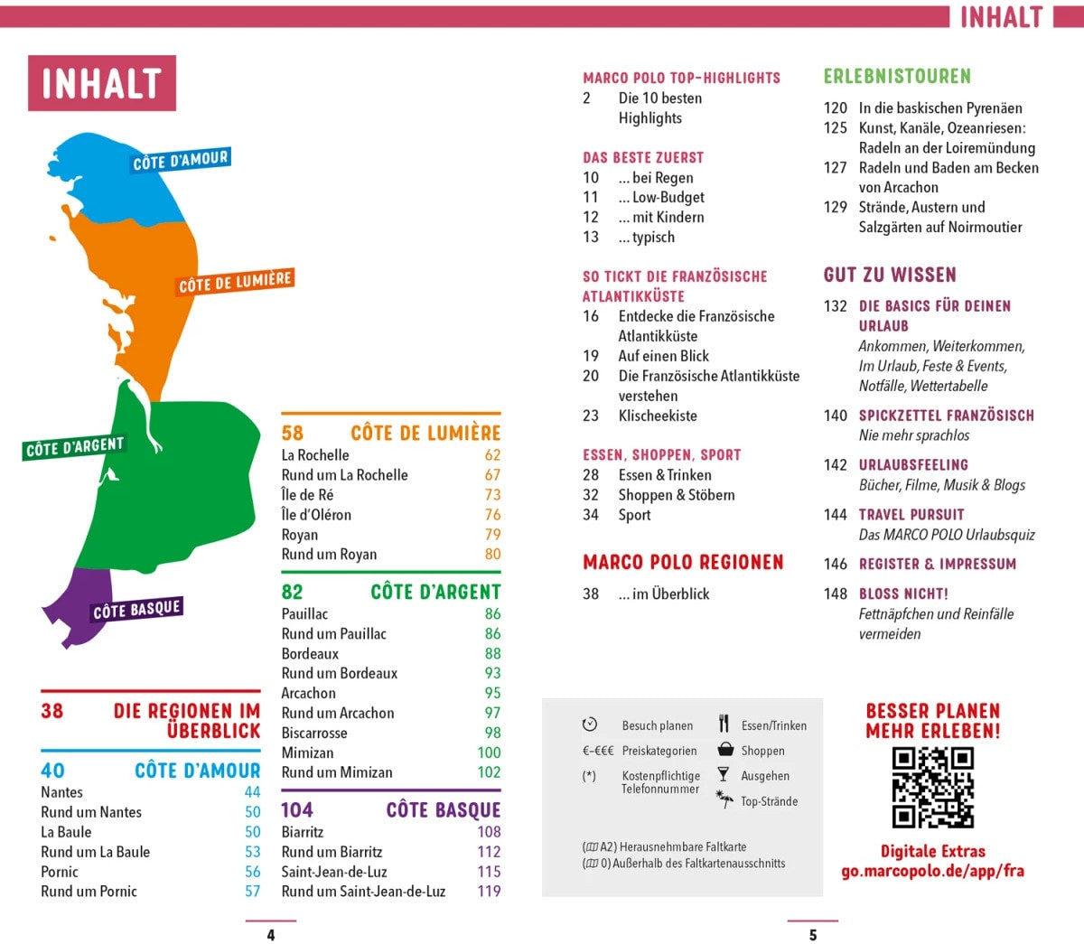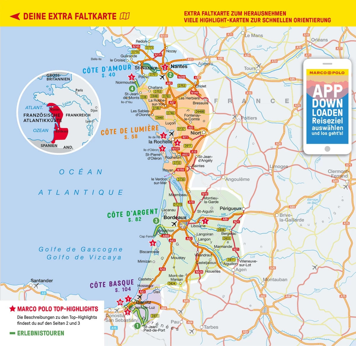 Ob Strandurlaub, Familienreise oder Städtetrip - stell dir mit deinem MARCO POLO Reiseführer genau die Reise zusammen, auf die du Lust hast! Schon vor deinem Trip findest du darin Wissenswertes über Land und Leute, Tipps für Unternehmungen auch abseits des Mainstreams und spannende Erlebnistouren für jeden Geschmack. So entdeckst du die schönsten Seiten der französischen Atlantikküste und verlierst dank der vollständig überarbeiteten Karten und Stadtpläne nie den Überblick!