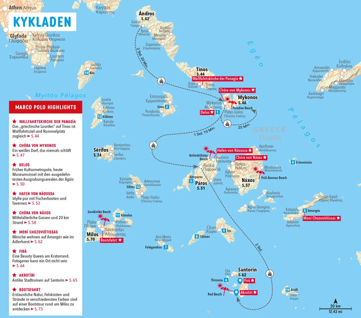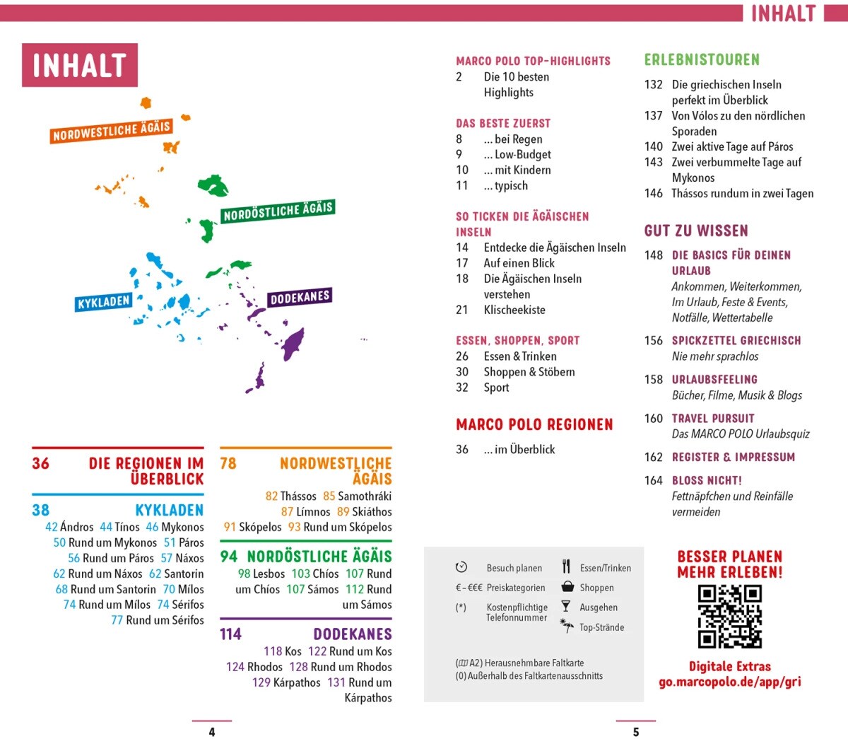 Ob Sérifos, Kos oder Santorin - dein MARCO POLO Reiseführer begleitet dich auf jede Insel der Ägäis, gibt dir die besten Tipps und sorgt mit Stadtplänen und Übersichtskarten für Orientierung. Schon vor deinem Trip findest du hier alles für eine maximal einfache Reiseplanung: Wissenswertes zu Land und Leuten, Tipps für Übernachtung und Anreise sowie Feste und Events rund ums Jahr.