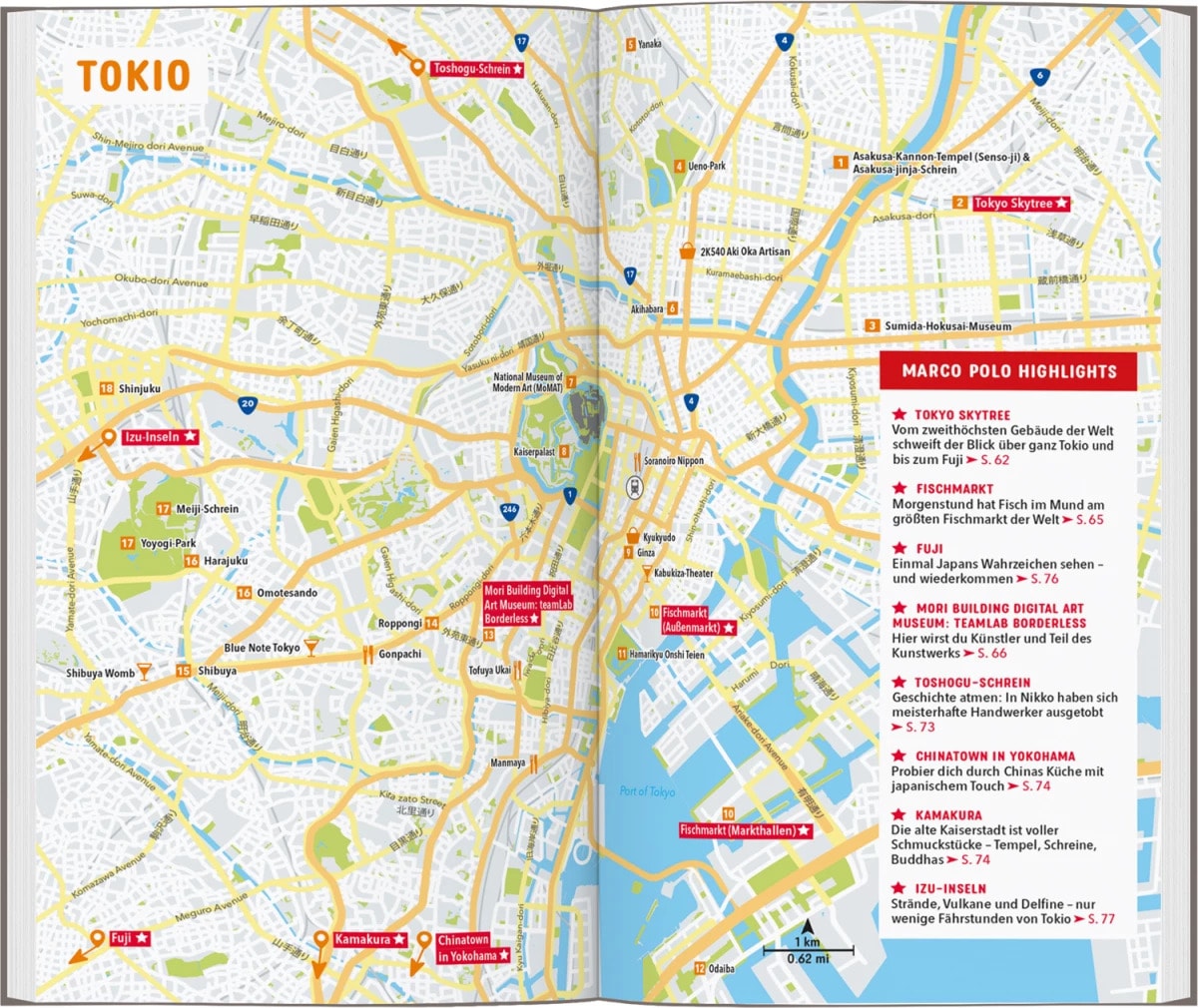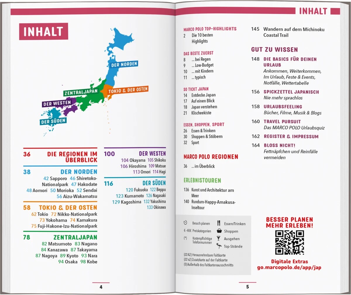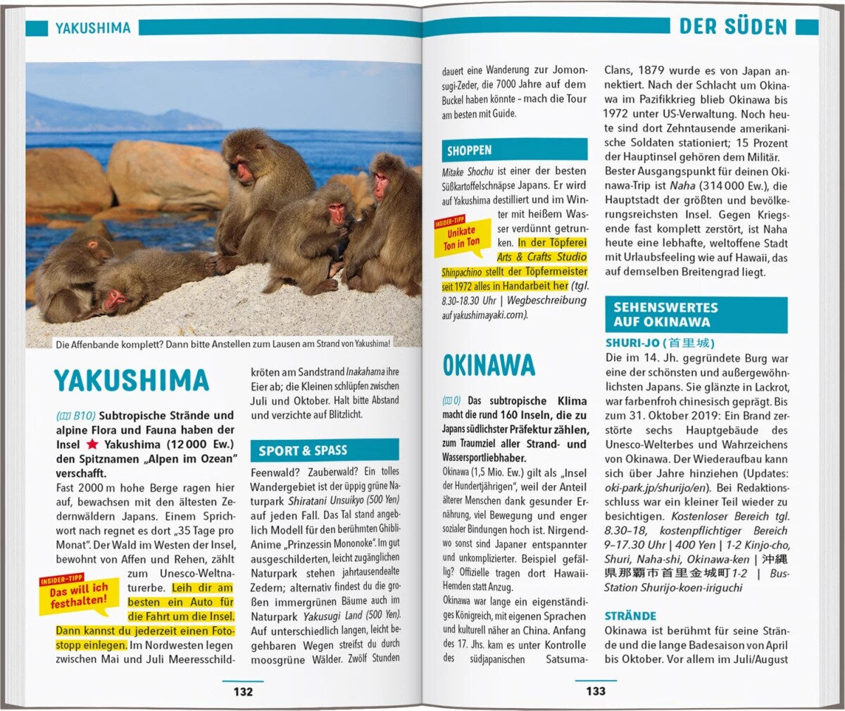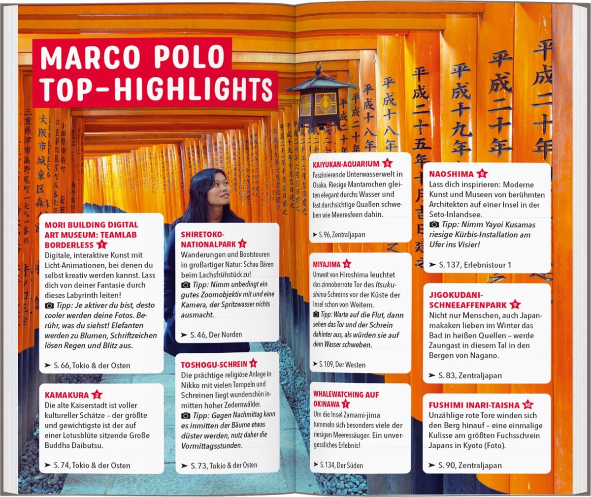 Erkunde die bunten Viertel Tokios, wo selbst Klobrillen kleine Technikwunder sind, oder meditiere nach einem vegetarischen Mahl mit den buddhistischen Mönchen im Tempeldorf Koya-san. Beobachte wilde Braunbären beim Lachsfrühstück oder Schneeaffen beim Baden in heißen Quellen und paddle im Kanu durch die Mangrovenwälder von Iriomote. Mit dem MARCO POLO Reiseführer planst du deine Japan-Reise im Handumdrehen und findest dich vor Ort schnell zurecht. So wird dein Urlaub zum unvergesslichen Erlebnis!