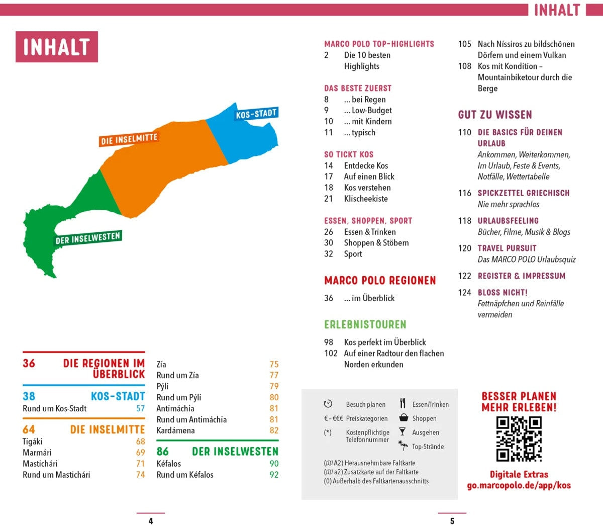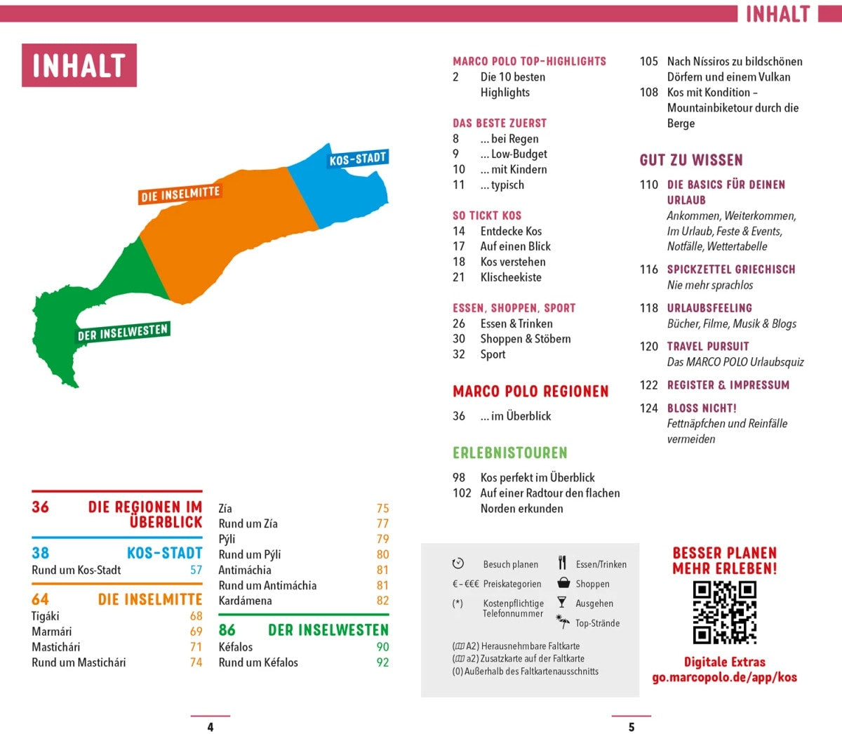 Egal ob aufregende Mountainbike-Tour durch die Berge oder entspanntes Radeln im flachen Norden: Mit dem Fahrrad siehst du mehr von Kos. Die besten Erlebnistouren findest du in deinem MARCO POLO Reiseführer! Oder du stellst dir aus den zahlreichen Tipps dein eigenes Abenteuer zusammen. Außerdem findest du viel Wissenswertes zum Reiseziel, Empfehlungen für Übernachtungsmöglichkeiten und Tipps für Bücher, Filme, Musik und Blogs für dein perfektes Urlaubsfeeling.