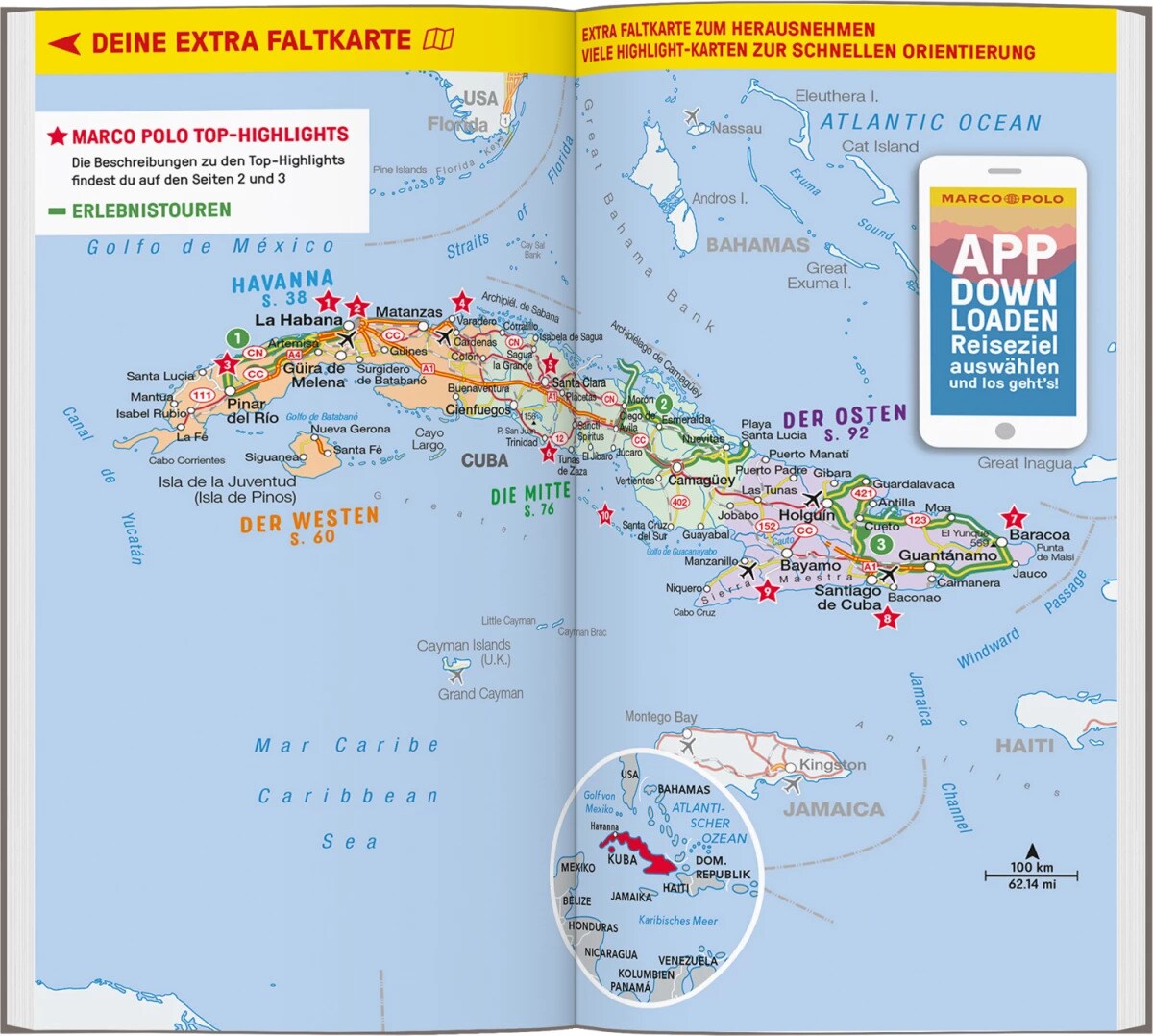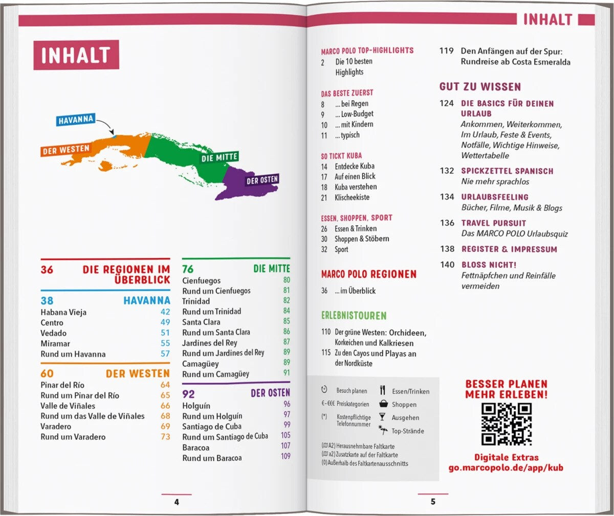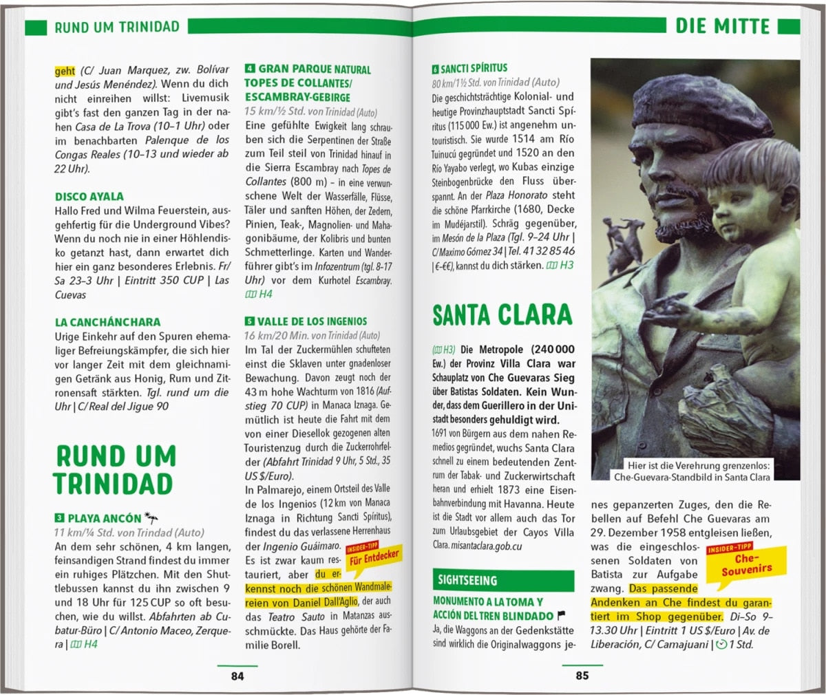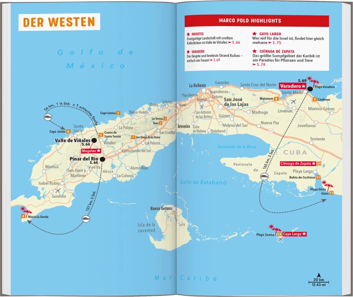 Mit dem MARCO POLO Reiseführer Kuba hast du alle Regionen im Überblick: Von Havanna mit seinen kolonialen Prachtbauten zu den Tabakplantagen im Westen, über Abstecher nach Cienfuegos und Trinidad bis in den Osten, wo einst Christoph Kolumbus an Land ging. Die MARCO POLO Erlebnistouren zeigen dir die Besonderheiten jeder Region Kubas!
