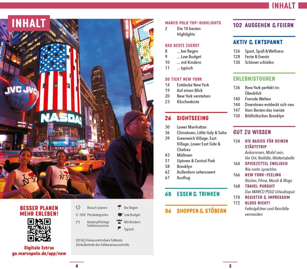 In New York brodelt Tag und Nacht das Leben. Damit du kein Must-see verpasst, macht dein MARCO POLO Reiseführer New York die Planung deines Traumurlaubs maximal einfach. Hier findest du alles Wissenswerte zur Stadt, Tipps zu Hotels und Restaurants, Infos zur Anreise und zum ÖPNV. Mit den übersichtlichen Stadtplänen findest du dich im Straßennetz des Big Apple schnell zurecht und stellst dir im Handumdrehen deine Lieblingstouren durch die Megacity zusammen.