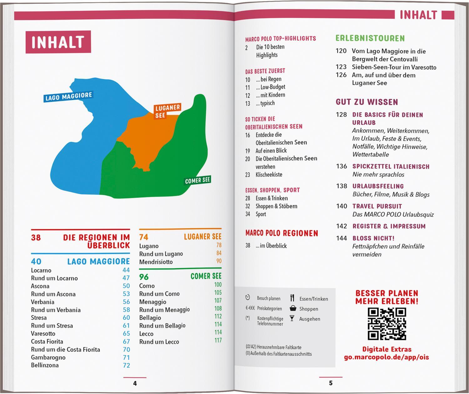 Im Straßencafé auf der Uferpromenade, beim Spaziergang durch Kastanienwälder oder auf dem Surfbrett mit dem Wind im Rücken fällt es nicht schwer, den Alltag hinter sich zu lassen. Spüre die Leichtigkeit des Seins bei einem Bungeesprung vom Verzasca-Staudamm oder wenn du in Colico mit dem Kite abhebst. Ganz egal, ob Action oder Entspannung pur - mit den Tipps in deinem MARCO POLO Reiseführer wird deine Reise zu den Oberitalienischen Seen zum unvergesslichen Erlebnis!