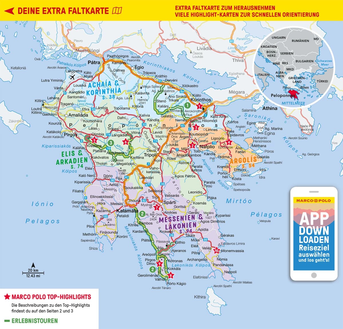 Erlebe antike Geschichte hautnah im Theater von Epidauros oder erkunde die bizarre Welt der Tropfsteinhöhle von Pírgos Diroú. Dein MARCO POLO Reiseführer Peloponnes ist bei all deinen Abenteuern der perfekte Begleiter!