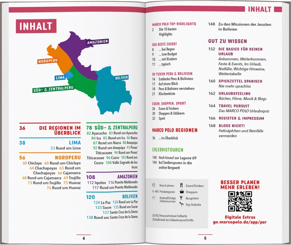 Damit du bei diesem Überangebot nichts verpasst, gibt dir dein MARCO POLO Reiseführer für Peru und Bolivien die besten Tipps und sorgt mit Stadtplänen und Übersichtskarten für Orientierung.