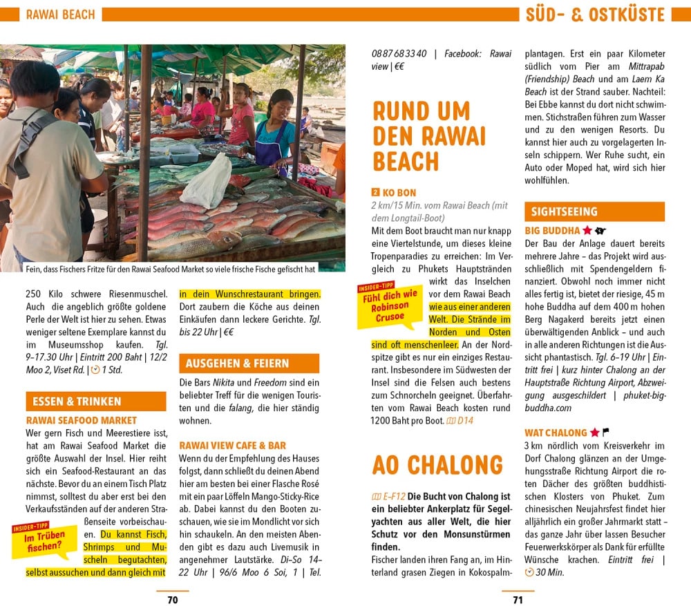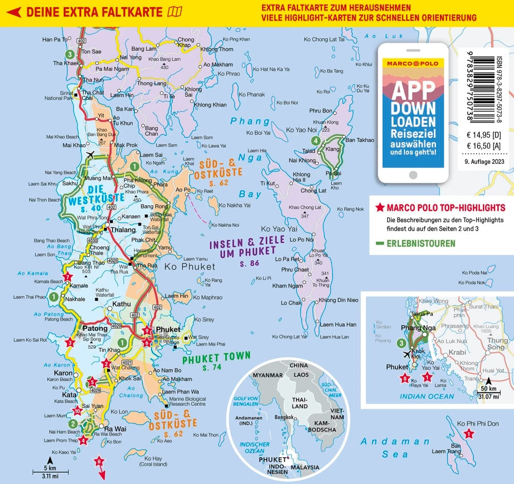 Chillen unter Palmen mit dem MARCO POLO Reiseführer Phuket Entspannen am Traumstrand, Abenteuer im Dschungel oder wilde Partynacht? Auf Phuket musst du dich nicht entscheiden! Lass dich einfach von der entspannten Art der Thais anstecken und erkunde die Insel ganz so, wie es dir gefällt. MARCO POLO steht dir mit den besten Infos und Empfehlungen zur Seite und sorgt mit Übersichtskarten und Stadtplänen dafür, dass du unterwegs nie die Orientierung verlierst. - Weniger suchen, mehr erleben: Mit den MARCO POLO Insider-Tipps, die nicht jeder kennt