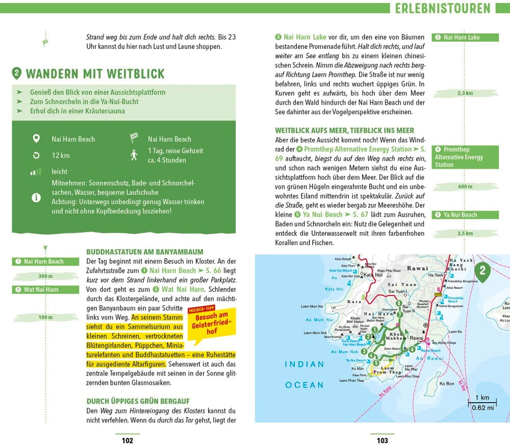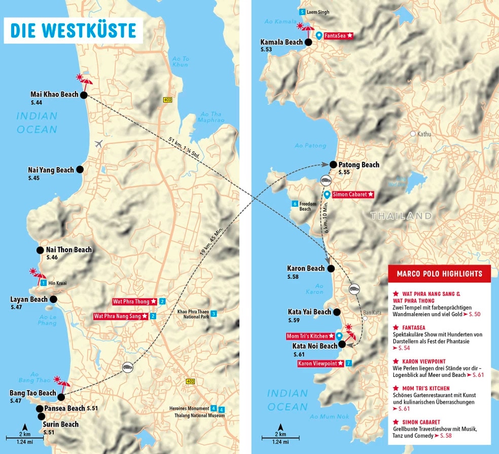 Mit dem MARCO POLO Reiseführer für Phuket bist du auf jedes Abenteuer bestens vorbereitet. Er führt dich zu den besten Spots auch abseits der bekannten Touristenpfade, sodass du garantiert kein Highlight der Insel verpasst. Ob du dem goldenen Buddha im Tempel Wat Phra Thong hallo sagst, im Sirinat National Park durch den Mangrovensumpf wanderst oder mit dem Longtail-Boot von Strand zu Strand schipperst - mit deinem MARCO POLO Reiseführer Phuket wird dein Urlaub unvergesslich!