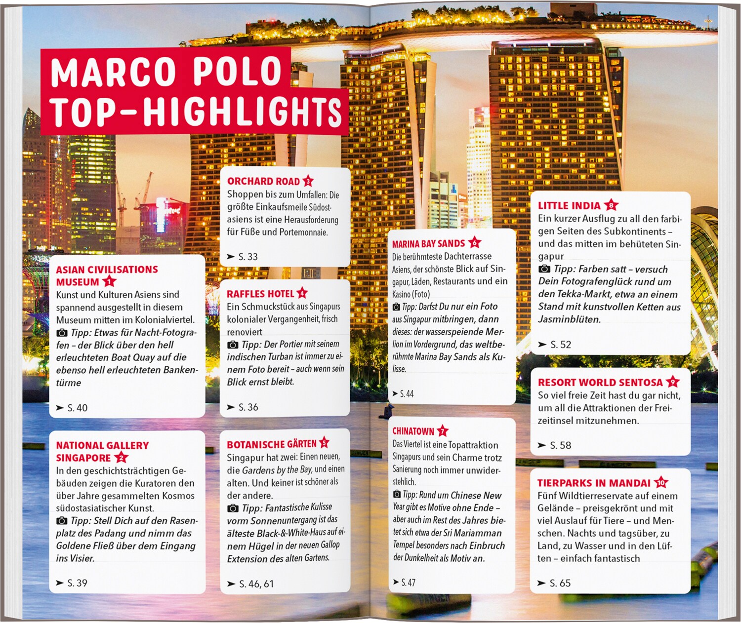 Doch was tun bei Monsun? Wo gibt es das leckerste Streetfood? Der MARCO POLO Reiseführer beantwortet übersichtlich und kompetent alle wichtigen Fragen zu deinem Singapur Urlaub: