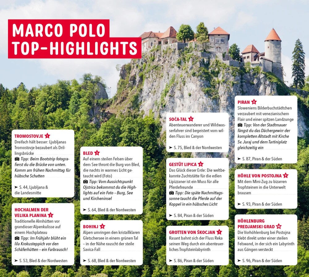 - Entdecke, was die Slowenen an ihrer Heimat lieben: mit den MARCO POLO Insider-Tipps von Autoren, die vor Ort leben