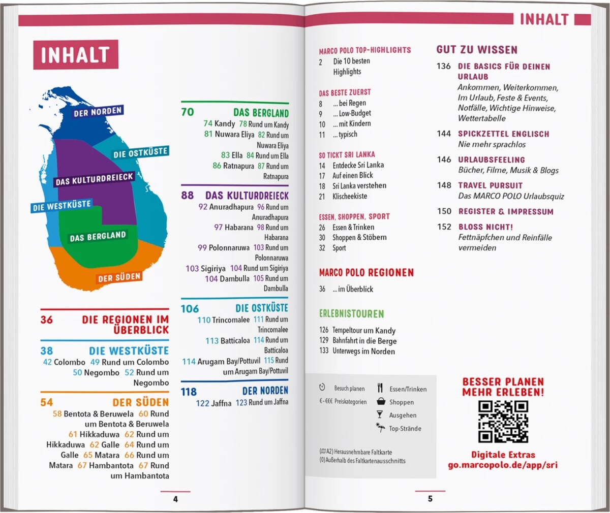 Wandern durchs Bergland, Wrack-Tauchen oder Segeln: nicht nur Outdoor-Fans werden von der Vielfalt Sri Lankas begeistert sein. Lass dich bei einer Ayurveda-Massage verwöhnen oder bestaune wilde Elefanten im Minneriya National Park: Mit deinem MARCO POLO Reiseführer stellst du dir genau die Reise zusammen, auf die du Lust hast!