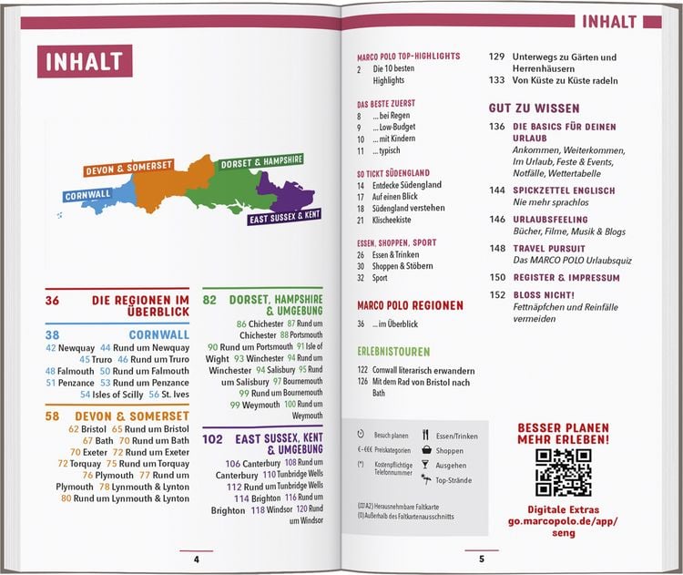 Urlaub bei König Artus und der Queen: Mit dem MARCO POLO Reiseführer durch Südengland von Cornwall bis Kent In Südengland verbirgt sich hinter jedem Hügel eine Story. Wo Kricket gesellschaftsfähig ist und die Queen ihr Wochenende verbringt, kannst du einen traumhaften Urlaub voller Kultur, Natur und Abenteuer genießen. Egal, ob es dich zu einer Schlossbesichtigung nach Windsor Castle oder mit dem Kanu auf die Themse zieht – dein MARCO POLO Reiseführer Südengland bietet eine Fülle von Tipps und Empfehlungen, mit denen du deine Reise individuell und flexibel gestalten kannst. Smarter planen, mehr erleben: mit den MARCO POLO Erlebnistouren und der kostenlosen Touren-App Essen, Shopping oder Sport? Entdecke die besten Restaurants, Shops und Aktivitäten für jeden Geschmack und jeden Geldbeutel! Alle Highlights im Überblick: Sehenswürdigkeiten, die du nicht verpassen solltest, und Insider-Tipps, die nicht jeder kennt Best-of-Tipps für Regenwetter, Urlaub mit Kindern oder Low-Budget-Ausflüge Alle Highlight-Karten und Stadtpläne wurden komplett überarbeitet Stadt und Land kennenlernen mit den MARCO POLO Erlebnistouren und Insider-Tipps Das Beste an Südengland ist seine wunderbare Natur. Wandere über die weißen Kreidefelsen von Dover, surfe an den Traumstränden von Newquay oder lüfte die Geheimnisse von Stonehenge, während du von Küste zu Küste radelst. Vergiss zwischen all den fantastischen Erlebnissen aber auf keinen Fall den Afternoon Tea! Ob Aktivurlaub oder Kultur pur, kurze Alltagsflucht oder langer Erlebnistrip: Dein MARCO POLO Reiseführer ist der ideale Begleiter, wenn du Südengland von Cornwall bis Kent erkundest.