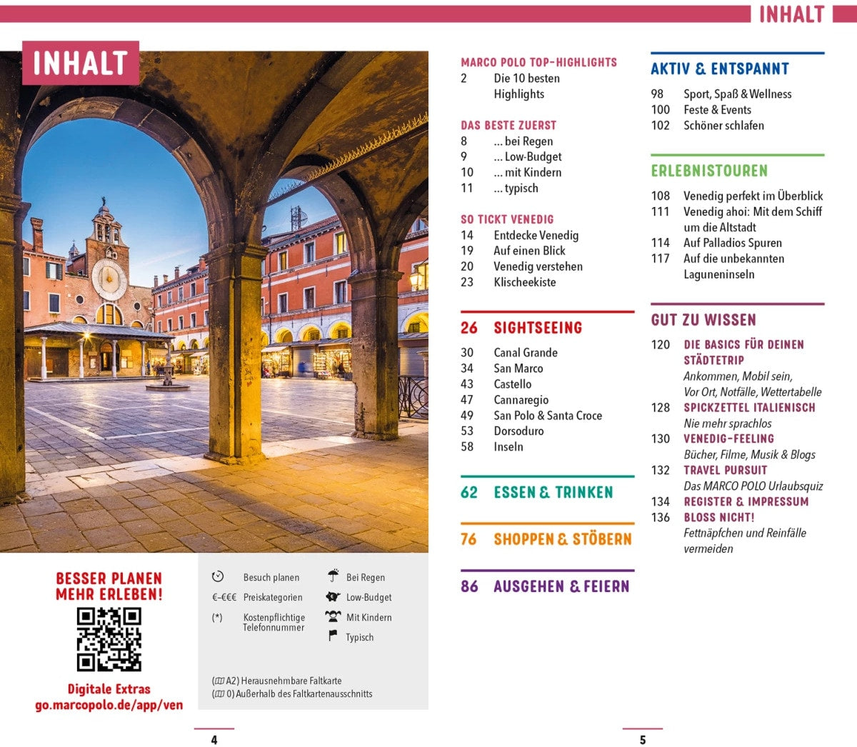 Wenn du Venedig so erleben möchtest, wie nur die Italiener ihre Stadt kennen, ist der MARCO POLO Reiseführer dein idealer Begleiter. Darin findest du alles, was du für deinen Urlaub brauchst: Wissenswertes zur Stadt, Tipps für Übernachtungen sowie Infos zur Anreise und zum ÖPNV.