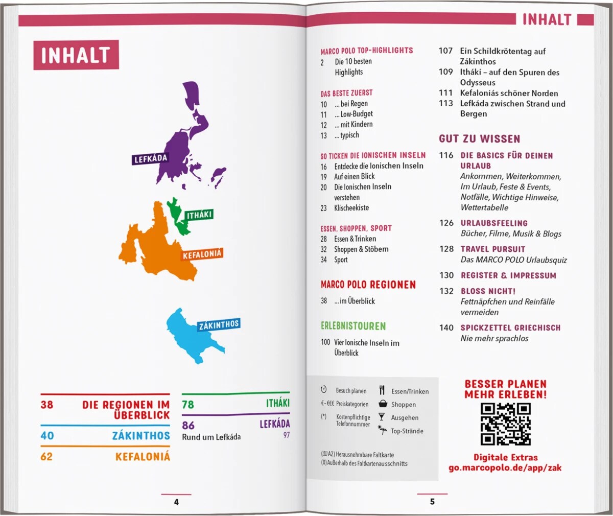Langweile im Paradies? Nicht auf den Ionischen Inseln! Flaniere durch Kefaloniás filmreife Villenorte im 50er-Jahre-Schick oder bestaune auf Lefkáda das pinke Flamingo-Meer rund um die Festung Agía Mávra. Auf Itháki entspannst du inmitten der Schauplätze von Homers Odyssee. Oder du stürzt dich ins Getümmel und spürst Karibik-Vibes, während du in den Strandbars von Zákinthos das Tanzbein schwingst. Egal, was Traumurlaub für dich bedeutet: Mit deinem MARCO POLO Reiseführer für Zákinthos, Itháki, Kefaloniá und Lefkáda wird deine Griechenland-Reise zum unvergesslichen Erlebnis!