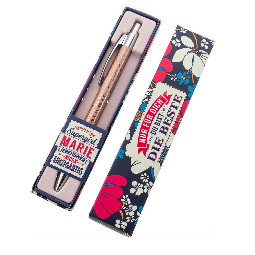 Zu jedem Anlass ein hochwertiger Kugelschreiber eine aufmerksame Geschenkidee – vor allem, wenn er mit dem Namen des Beschenkten personalisiert ist. Unsere ansprechende Auswahl an Kulis, in edlem Geschenketui mit originellem Spruch, wird stilbewusste Ladies und echte Kerle begeistern. Ausdrucksstarke, maskuline Designs mit insgesamt 50 Männernamen, feminine Muster für die 50 Frauennamen und 20 allgemeine Titel machen das neue Sortiment an kreativ gestalteten H&H Kugelschreibern aus. Die Kulis liegen angenehm in der Hand und sorgen für ein elegantes Schriftbild.