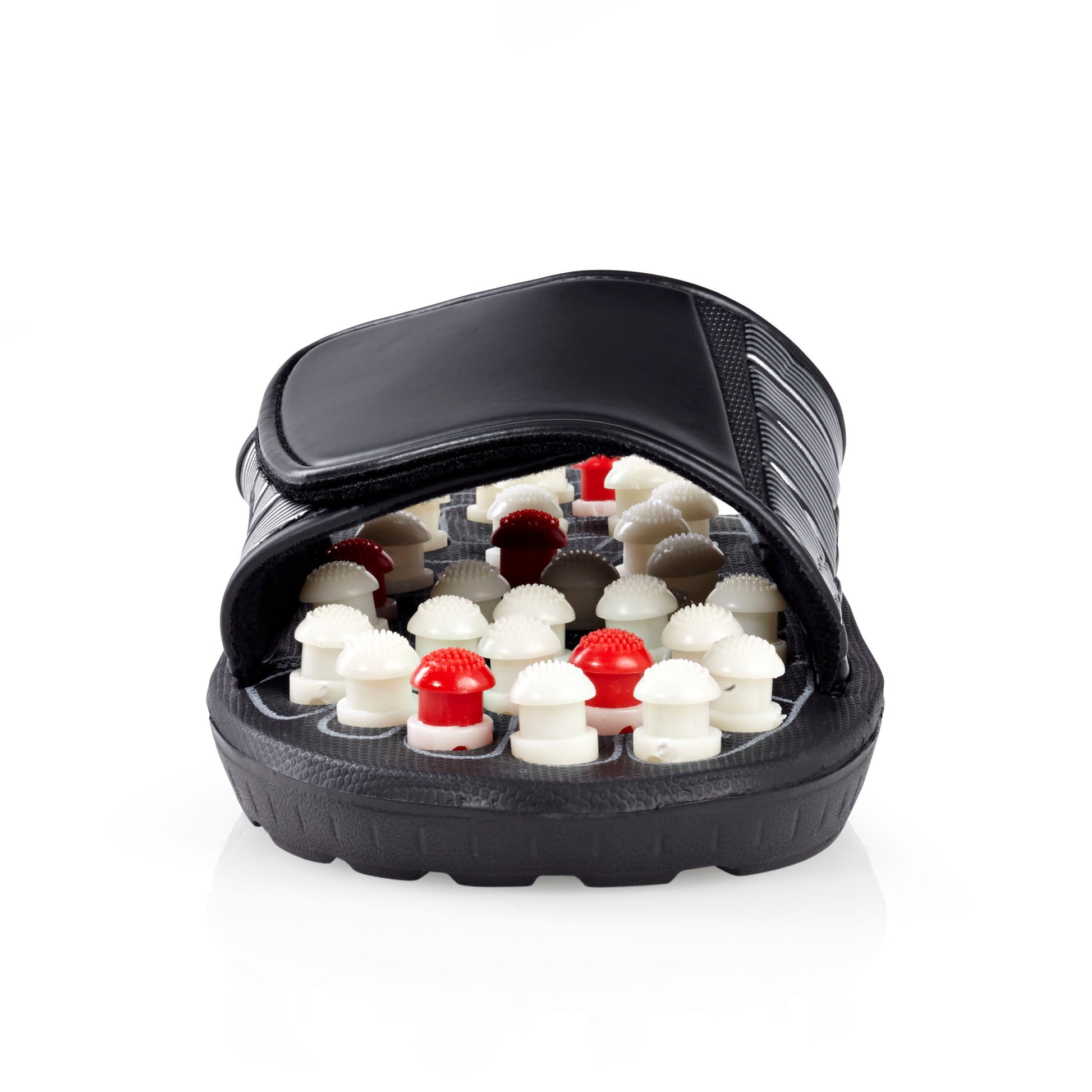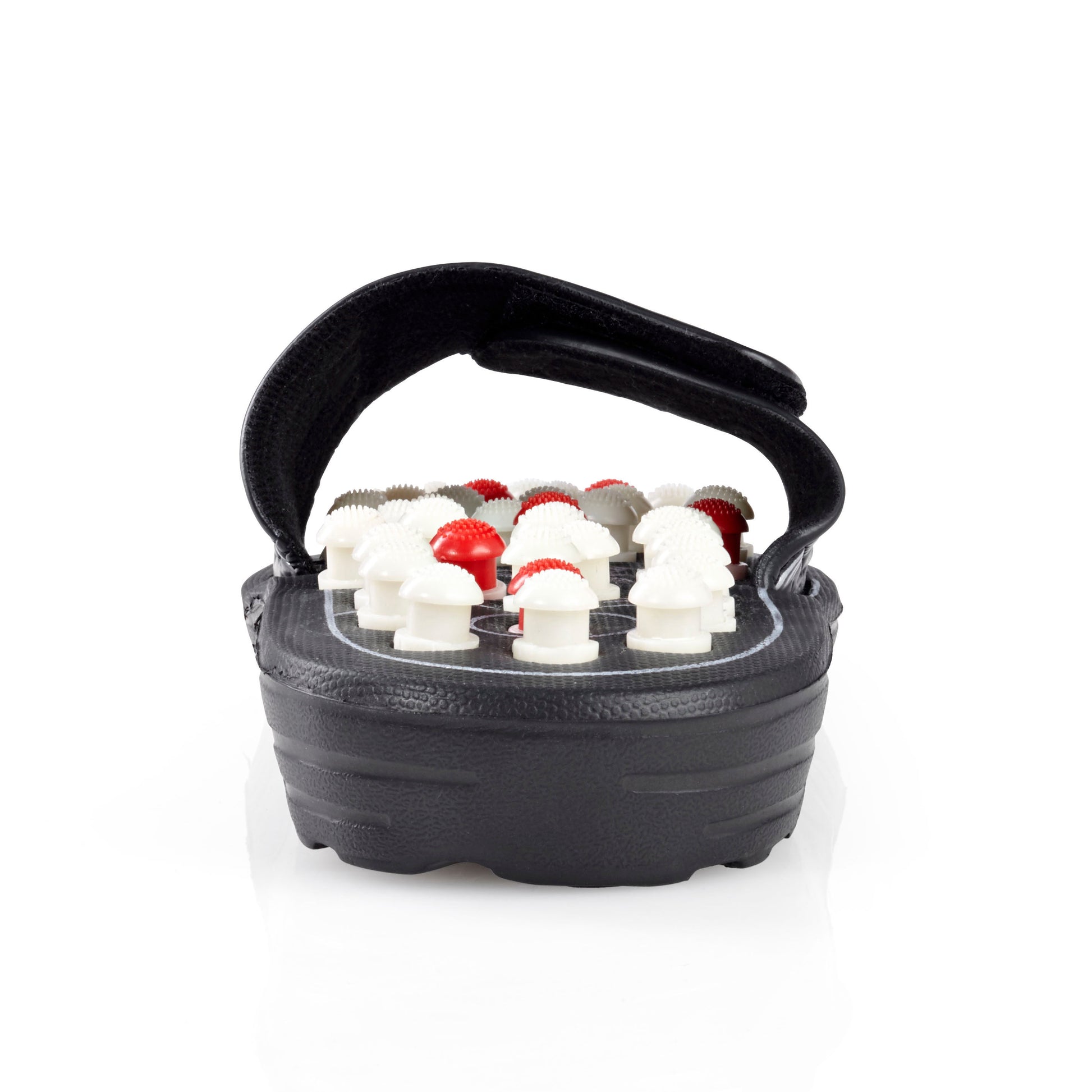 Gelangen Sie mit der Massage-Pantolette, schwarz Schritt für Schritt zu mehr Entspannung und Wohlbefinden.