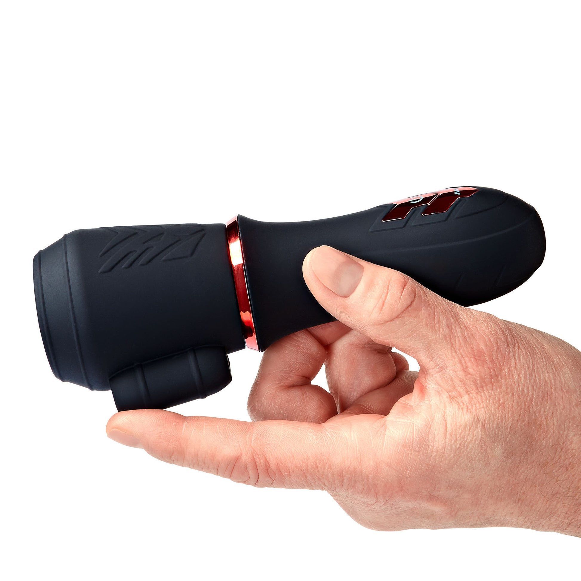 Dieser Masturbator sorgt für Leidenschaft und Spass - seine zwei Motoren bringen Männer richtig in Fahrt! Der solide verarbeitete Freudenspender stimuliert die Eichel und den vorderen Penisbereich. Innen ist er bestückt mit Reizrillen und Noppen, die zur Exstase führen. Der hintere Teil des Masturbators ist sehr flexibel und kann der Penisform angepasst werden, was für lustvolle Verwöhnmomente sorgt.