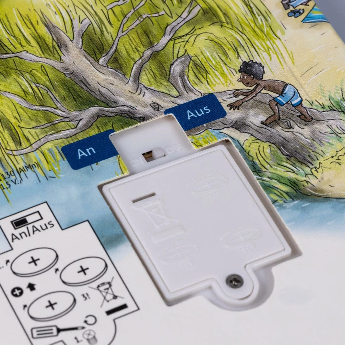 Ausgeliefert werden die Bücher mit 3 handelsüblichen Knopfzell-Batterien LR 1130 mit je 1,5 V.