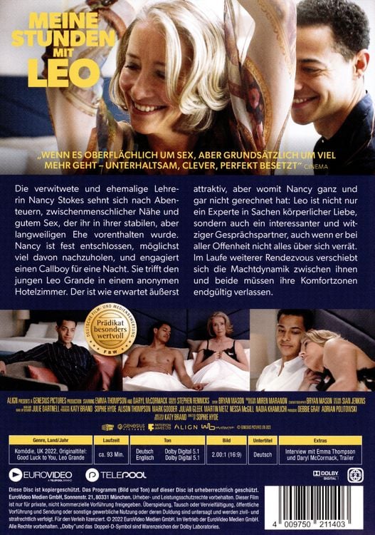 Nancy Stokes (Emma Thompson), eine verwitwete, ehemalige Lehrerin, sehnt sich nach Abenteuern, zwischenmenschlicher Nähe und gutem Sex, der ihr in ihrer stabilen, aber langweiligen Ehe vorenthalten wurde. Nancy ist fest entschlossen, möglichst viel davon nachzuholen, und engagiert einen Callboy für eine Nacht. Sie trifft den jungen Leo Grande (Daryl McCormack) in einem anonymen Hotelzimmer außerhalb der Stadt. Der ist wie erwartet äußerst attraktiv, aber womit Nancy ganz und gar nicht gerechnet hat: Leo ist nicht nur ein Experte in Sachen körperlicher Liebe, sondern auch ein interessanter und witziger Gesprächspartner. Und auch wenn er bei aller Offenheit nicht alles über sich verrät, stellt Nancy fest, dass sie ihn mag. Und er mag sie. Im Laufe weiterer Rendezvous verschiebt sich die Machtdynamik zwischen ihnen und beide müssen ihre Komfortzonen endgültig verlassen. Presse: - "Wenn es oberflächlich um Sex, aber grundsätzlich um viel mehr geht - Unterhaltsam, clever, perfekt besetzt" - (Cinema)