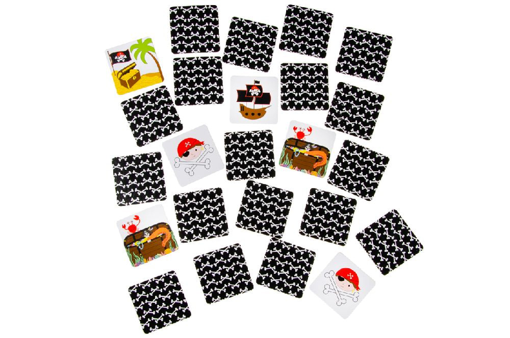Das Memory mit Piratenmotiven fördert die Konzentration und die Leistung des Gedächtnisses. Kombiniere die gleichen Karten und gewinne das Spiel.