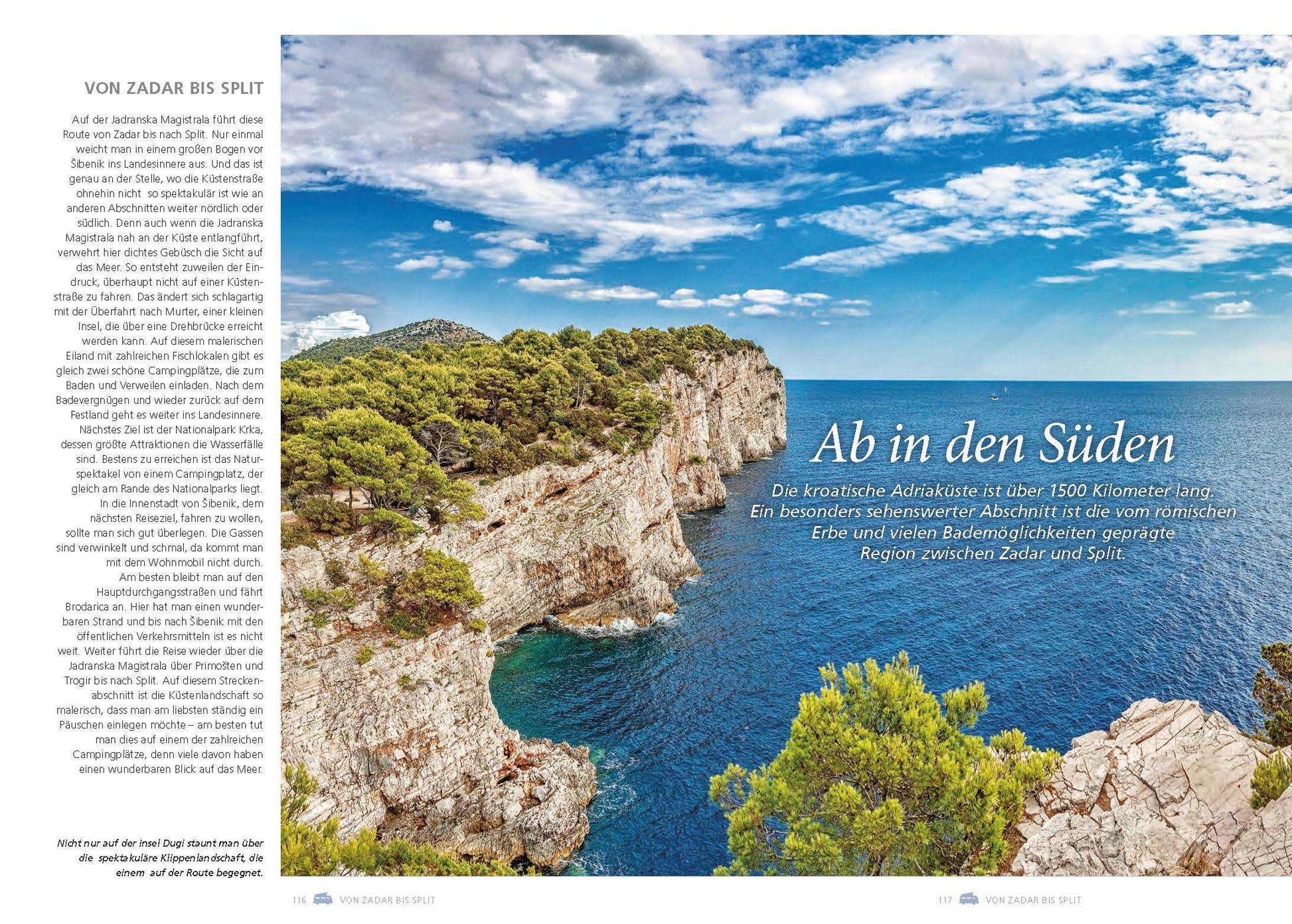 Traumrouten mit dem Wohnmobil Lust auf traumhafte Inselparadiese, umspült von der türkisblauen Adria, historische Städte wie Dubrovnik, Rovinj oder Split, oder faszinierende Nationalparks? Dann Wohnmobil oder Camper bepacken und auf nach Kroatien, in ein Land, das mit traumhafter Natur und Kultur aufwartet. Ob Inseln wie Rab oder Hvar, römische Amphitheater oder das glasklare Meer, das immer wieder zu einer Erfrischung einlädt ein Wohnmobilurlaub in Kroatien ist so vielseitig, wie das Land selbst. Auf 14 abwechslungsreichen Reiserouten geht es vom Klassiker Istrien über die Inselwelt der Kvarner Bucht bis ins noch unbekannte Slawonien. Auch das Nachbarland Montenegro, das noch immer als echter Geheimtipp gilt, ist mit von der Partie.