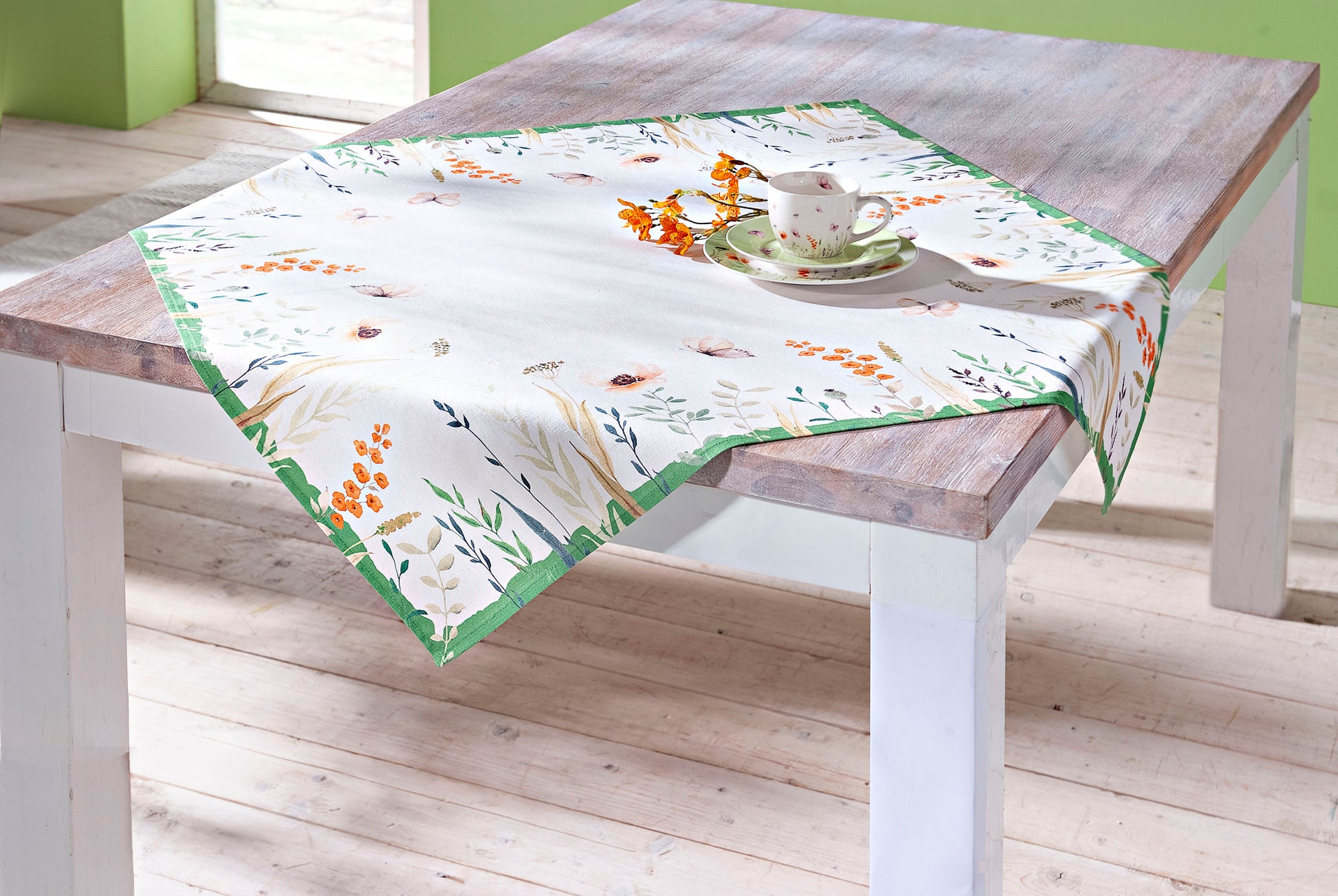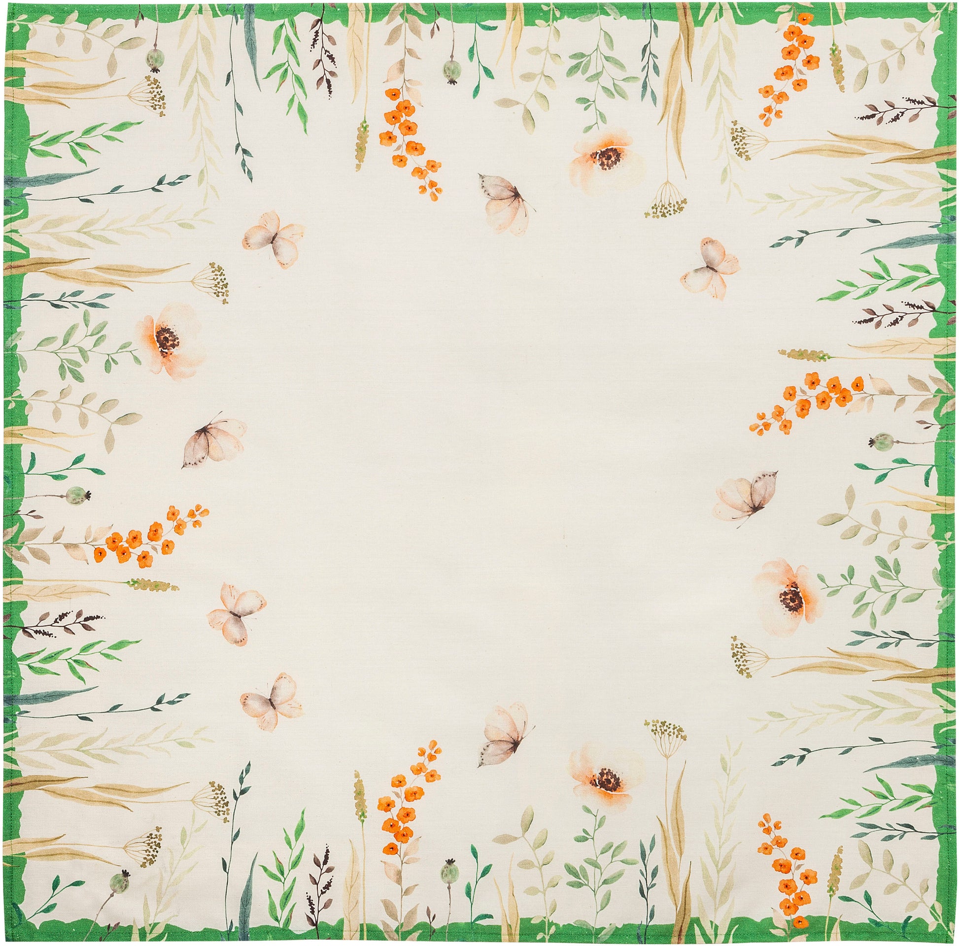 Tischwäsche schützt Ihren Esstisch nicht nur vor Flecken und Kratzern sie macht ihn im Handumdrehen zur schön gedeckten Tafel! Das aparte Blüten-Motiv zieht alle Blicke auf sich. Blumen, Blätter und die tanzenden Schmetterlinge glänzen mit dekorativen Farbverläufen – wie ein kunstvoll gemaltes Aquarell!