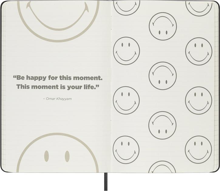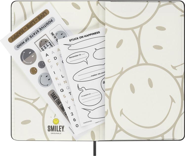 Klappentext zu Moleskine Notizbuch - Smiley, Large/A5, Fester Einband, Liniert, Smiley Logo