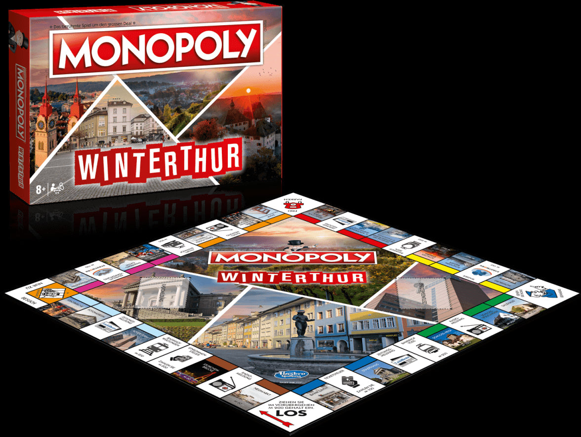 MONOPOLY, das weltber�hmte Spiel um Grundbesitz und Immobilien, f�hrt Sie mit dieser Ausgabe durch Winterthur. Winterthur ist eine Schweizer Stadt, die nord�stlich von Z�rich in der N�he der deutschen Grenze liegt. Zu den Museen der Stadt geh�ren unter anderem das Fotomuseum Winterthur und das Swiss Science Center Technorama. Im Museum Oskar Reinhart werden Kunstwerke von der Antike bis ins 20. Jahrhundert ausgestellt. Das Kunstmuseum Winterthur zeigt moderne Kunst, darunter Werke von Picasso und Klee. Auf einer Anh�he befindet sich der Rosengarten mit Hunderten Rosensorten und Blick auf die Altstadt.