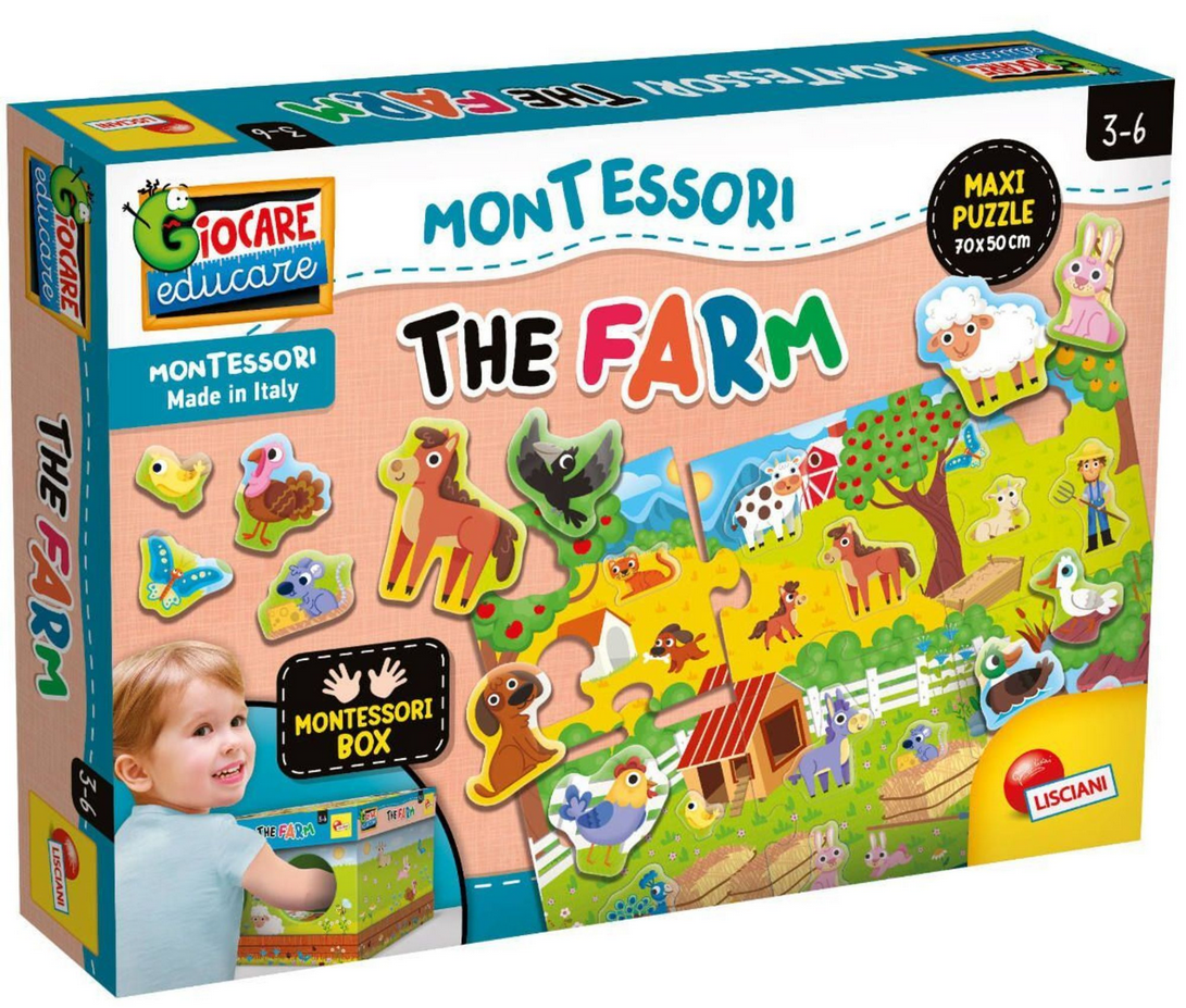 Diese Montessori-Spielware "Maxi The Farm" fördert die Entwicklung von Kindern durch interaktives Spiel. Es ist speziell entworfen, um motorische Fähigkeiten, Kognition und soziale Kompetenzen spielerisch zu schulen. Ideal für Lernspass mit einem landwirtschaftlichen Thema."