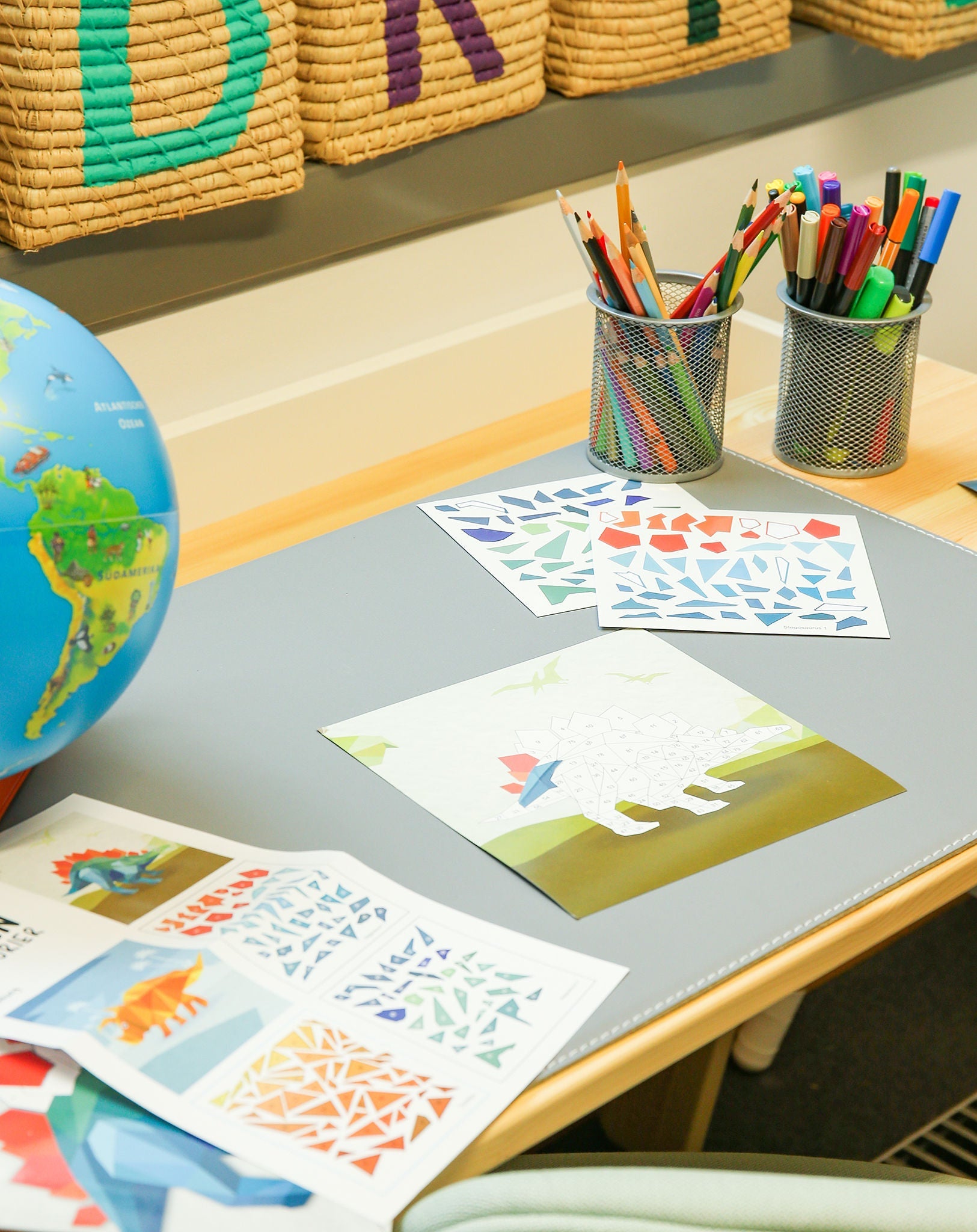 Das Mosaikbastelset „Stickern nach Zahlen – Dinosaurier“ werden Dino-Fans lieben