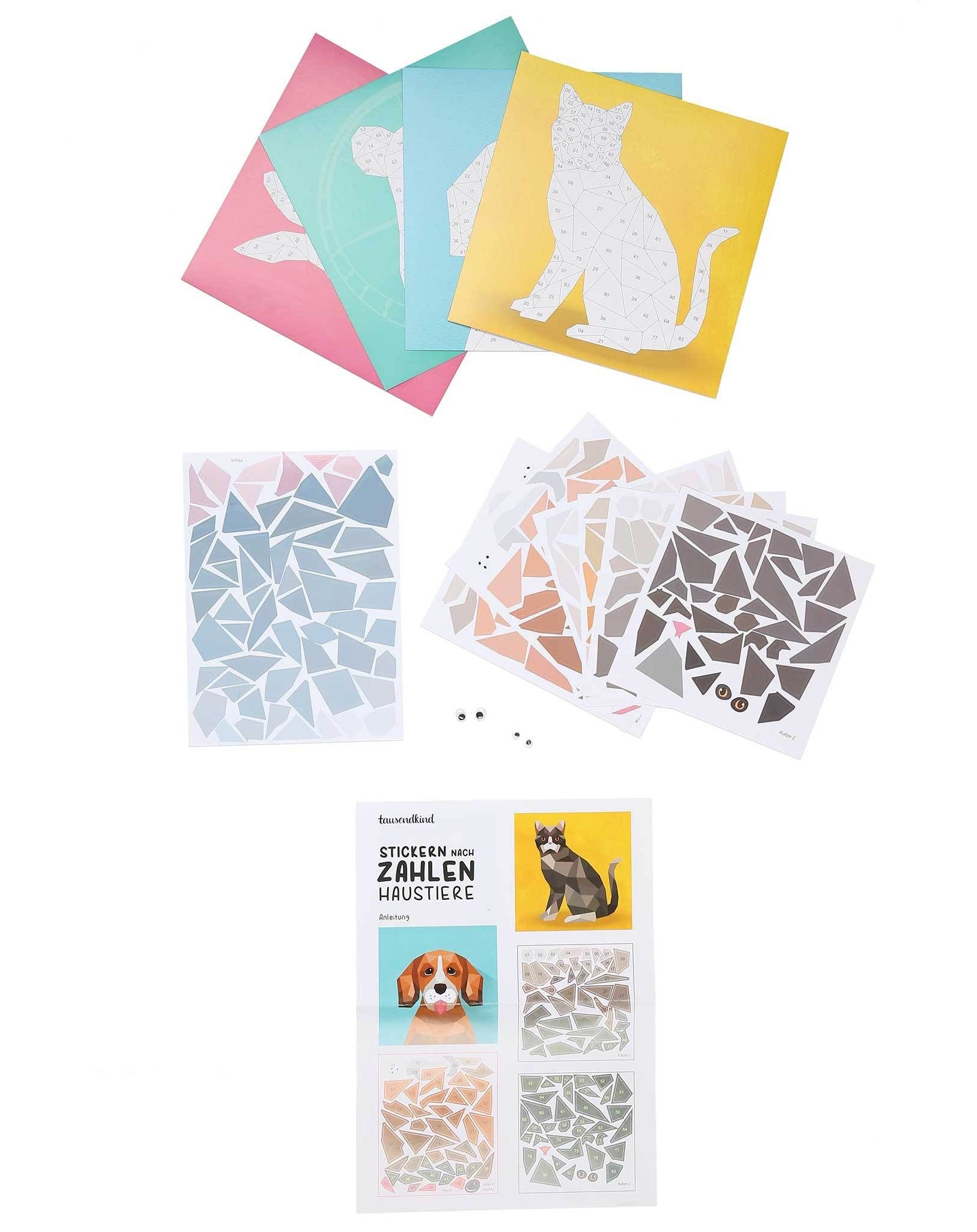 Mosaikbastelset STICKERN NACH ZAHLEN - HAUSTIERE 4-teilig