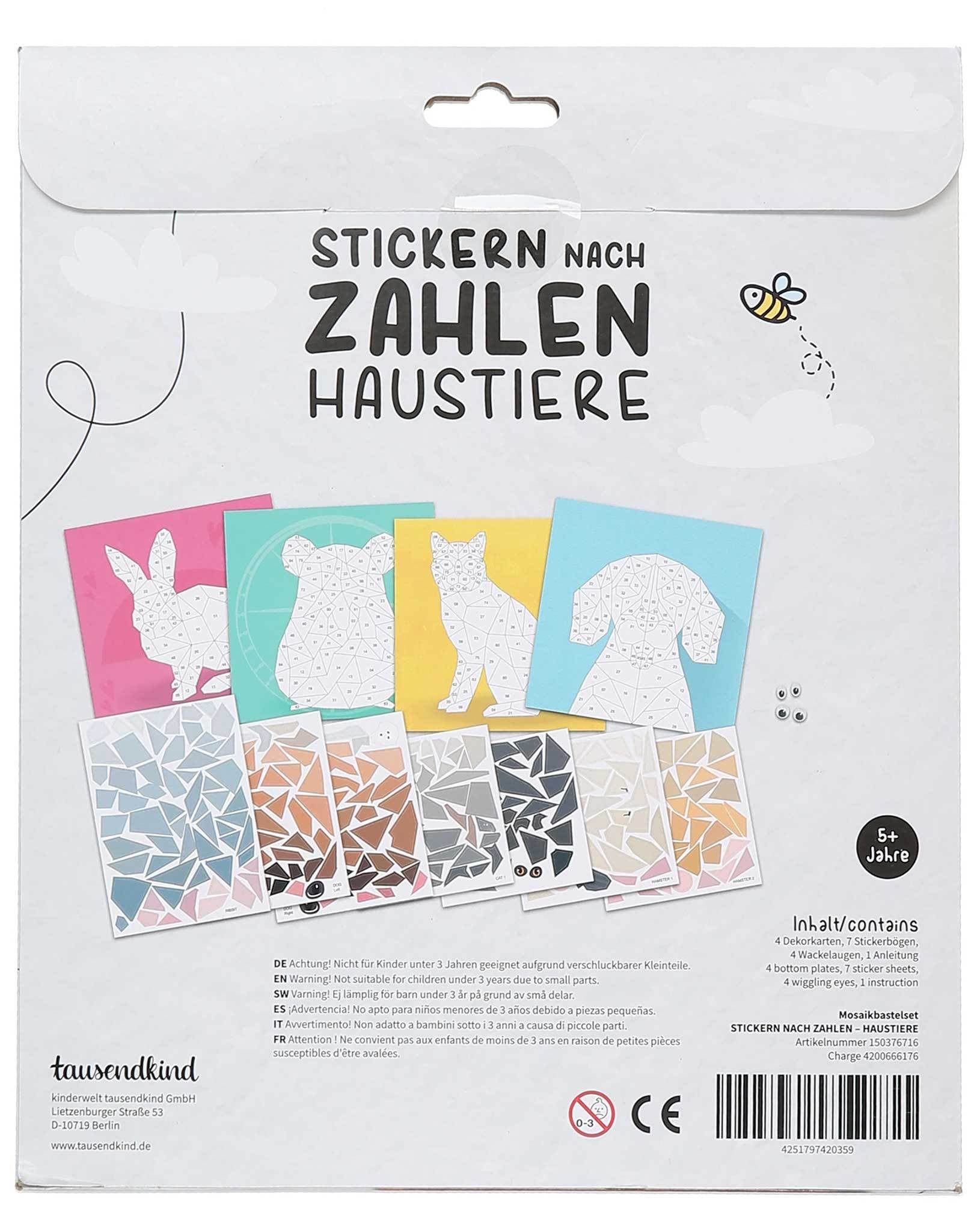 Bestellen Sie das Mosaikbastelset „Stickern nach Zahlen – Haustiere“ von tausendkind gleich hier.