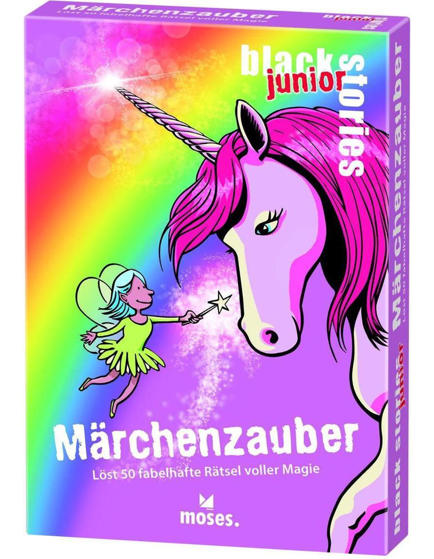 Diese black stories junior versammeln 50 fabelhaft verzwickte Rätsel voller Magie für kleine, fantasievolle Ratefüchse. In den Rätseln spielen eifrige Elfen, furchtlose Feen und verzauberte Einhörner die Hauptrolle und umgeben die Spieler*innen mit einem Hauch von Magie. Es passieren zauberhafte Dinge, deren funkelnde Geheimnisse durch Fragen, Raten und Tüfteln enthüllt werden müssen. Eine ordentliche Portion Neugier, ein guter Riecher und eine blühende Fantasie sind auf jeden Fall von Vorteil!