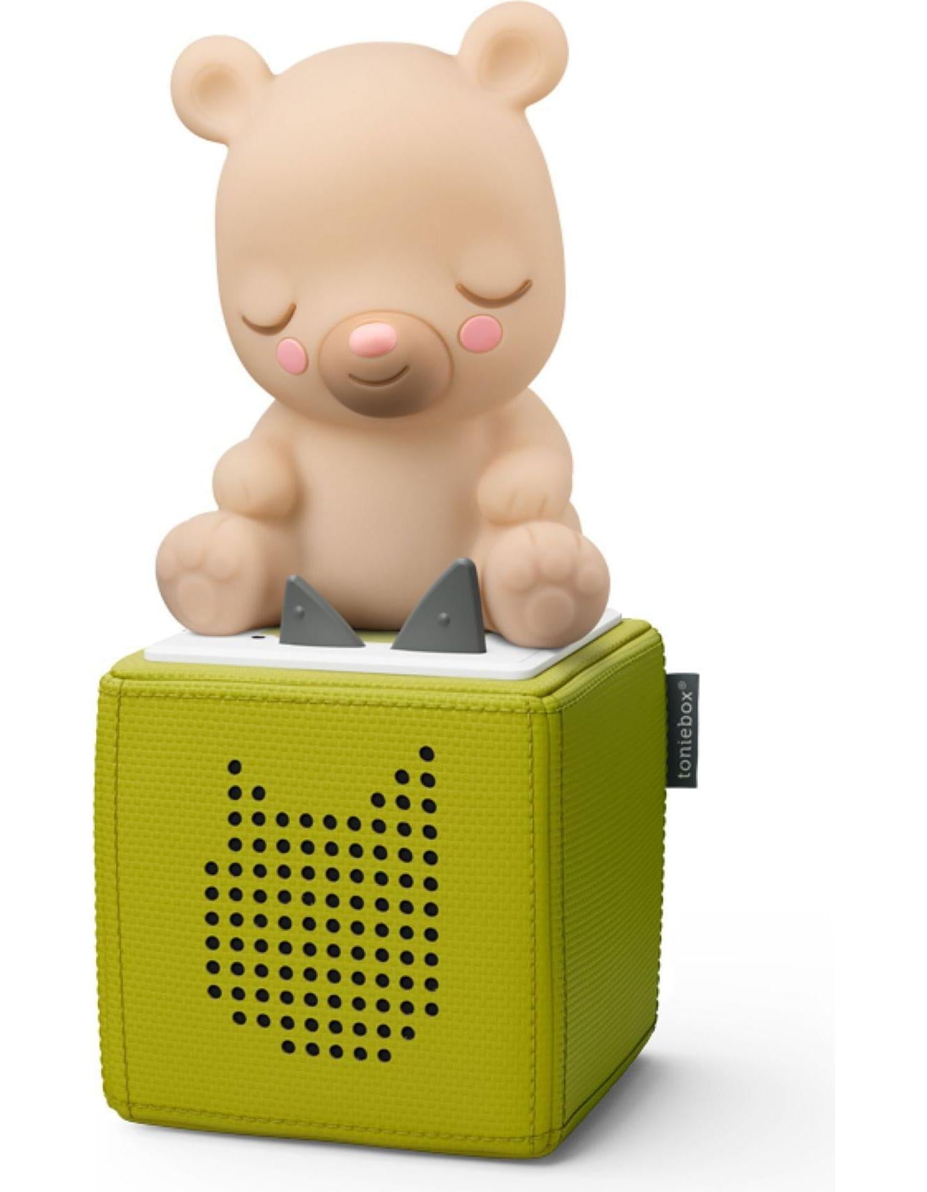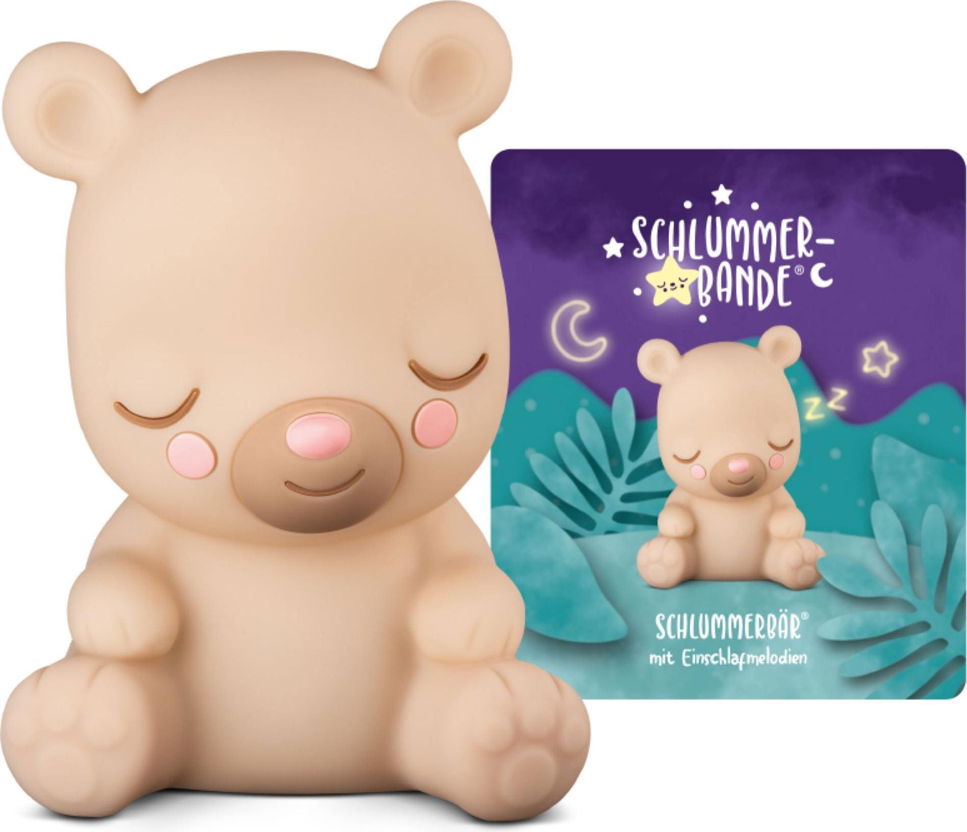 Der Schlummerbär Nachtlicht Tonie hilft dir und deinem Kind, nach einem aufregenden Tag zur Ruhe zu kommen. Mit bezaubernden Melodien, warmem Licht und persönlichen Gute-Nacht-Geschichten schafft er eine ruhige Wohlfühlatmosphäre - perfekt zum Entspannen und Einschlummern. Auf der niedrigsten Helligkeitsstufe verbreitet der wiederaufladbare Nachtlicht Tonie bis zu 240 Stunden lang sein warmes Leuchten. Danach kann er mit dem mitgelieferten USB-C-Kabel einfach wieder aufgeladen werden. Bezaubernde Melodien Unser Schlummerbär Nachtlicht Tonie unterstützt eure Einschlaf-Routine mit warmen Klängen, die einen im Nu sanft ins Träumeland gleiten lassen. Geniesse 75 Minuten lang speziell komponierte Einschlafmelodien und weiteren Platz für Schlummerinhalte deiner Wahl, damit du entspannt einschlafen kannst. Beruhigendes Licht Ein beruhigendes, warm leuchtendes Nachtlicht für die Toniebox, das auch separat funktioniert. Mit vier dimmbaren Helligkeitsstufen begleitet das Schlummerschaf dich und deinen kleinen Schatz durch alle Schlafphasen. Vom sanften Einschlummern bis zum selbstständigen Wiedereinschlafen, falls dein Kind zwischendurch aufwacht. Persönliche Aufnahmen Ähnlich wie der Kreativ-Tonie, ermöglicht dir der Nachtlicht Tonie auch ganz persönliche Geschichten abzuspielen. Du kannst mit der mytonies App ganz einfach den Inhalt deines Schlummerbären bestimmen. Ob vorinstallierte Gute-Nacht-Melodien, dein eigener Inhalt oder beides vor- oder hintereinander - du hast die freie Wahl. Noch mehr erleuchtende Infos: - Unendliche Möglichkeiten für 90 Minuten Schlummerinhalte inkl. 75 Minuten vorinstallierter Einschlafmelodien - Laufzeit bis zu 240 Stunden (bei niedrigster Helligkeitsstufe) - 4 Helligkeitsstufen (dimmbar) - Einstellbarer Timer (30 Minuten) für das Licht - Wiederaufladbar mit beiliegenden USB-C Kabel - Ein niedlicher Tonie im Schlummerbande-Design aus angenehm weichem Silikonmaterial Ab 3 Jahre