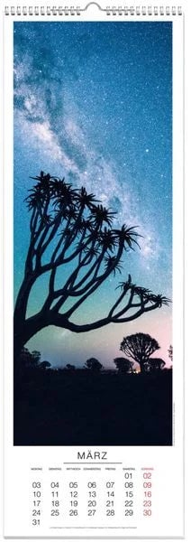 Das Kalendarium des Panoramakalenders 2025 enthält alle Wochen- und Feiertage übersichtlich auf einen Blick. Die stabile Spiralbindung sorgt dafür, dass der Kalender das ganze Jahr über gut in Form bleibt. Und wenn Sie Ihr Lieblingsmotiv auch nach dem Monat noch genießen möchten, bietet sich eine DIY-Idee an: Schneiden Sie es aus und rahmen Sie es - fertig ist der dauerhafte Wandschmuck!.