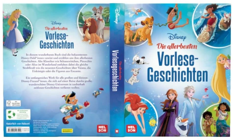 Dieses Buch enthält die berühmtesten und beliebtesten Geschichten von Disney. Von König der Löwen bis Encanto ist alles dabei, was bei Disney Rang und Namen hat. Ein großer Vorlesespaß für kleine und große Disney-Fans!