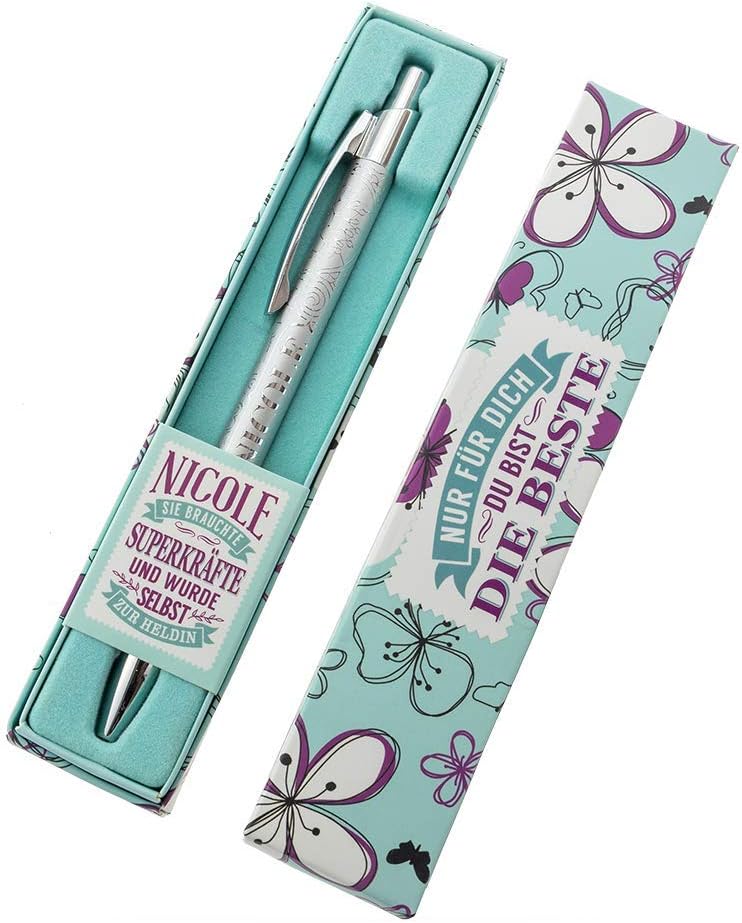 Zu jedem Anlass ein hochwertiger Kugelschreiber eine aufmerksame Geschenkidee – vor allem, wenn er mit dem Namen des Beschenkten personalisiert ist. Unsere ansprechende Auswahl an Kulis, in edlem Geschenketui mit originellem Spruch, wird stilbewusste Ladies und echte Kerle begeistern. Ausdrucksstarke, maskuline Designs mit insgesamt 50 Männernamen, feminine Muster für die 50 Frauennamen und 20 allgemeine Titel machen das neue Sortiment an kreativ gestalteten H&H Kugelschreibern aus. Die Kulis liegen angenehm in der Hand und sorgen für ein elegantes Schriftbild.