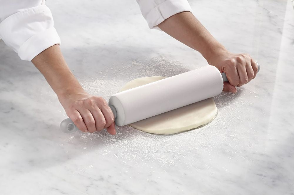 Dank der Silikonoberfläche hatet der Teig nicht am Nudelholz. Die ergonomischen Griffe bieten entsprechenden Haltekomfort und Kontrolle. Die Reinigung erfolgt ganz einfach mit heissem Wasser.