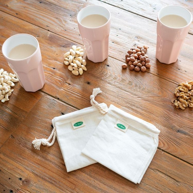 Dieses 2er Set von Nussmilchbeuteln ermöglicht es Ihnen, eigene pflanzliche Milchsorten zu Hause herzustellen. Die Beutel sind wiederverwendbar und eignen sich ideal zum Filtern von Nuss- und Samenmilch, sowie für die Herstellung von Säften und Käsealternativen aus Nüssen. Sie sind leicht zu reinigen und bieten eine praktische Lösung für die Zubereitung von frischen, natürlichen Getränken.