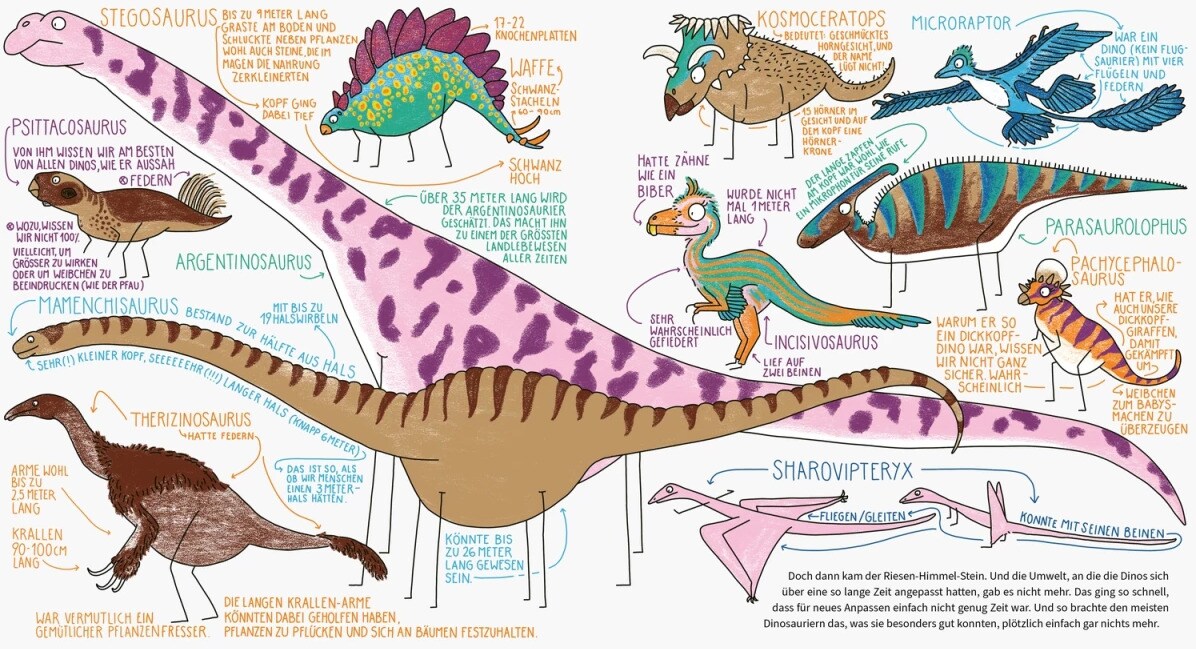 In diesem Sach-Bilderbuch haben Mai Thi Nguyen-Kim und Marie Meimberg auf über 100 Seiten all ihr Wissen in Antworten und Bildern vereint. Wenn Du dieses Buch liest, wirst Du verstehen, warum Dinos noch leben und was das mit der Geschichte der Erde zu tun hat. Mit Evolutionstheorie, dem Wettbewerb der Tiere und der Tatsache, dass wir besser überleben, wenn wir sehr, sehr unterschiedlich sind. Du wirst verstehen: Diese scheinbar kleine Frage ist mit der Klimakatastrophe, der Gut-Schlecht-Gleichzeitigkeit, Massensterben, T-rex-Klettergerüsten und Insel-Kiwis verbunden. Und mit uns. Mit der Frage, wie wir leben wollen. Und wie wir mit unserer Menschen-Magie die Welt verändern.